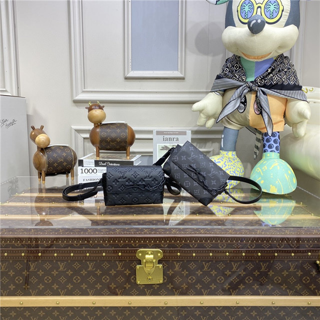 The Steamer Wearable Wallet is made from Taurillon leather embossed with the Monogram pattern and finished with black hardware, including the signature chain-and-pin detail. The inside zipped pocket keeps belongings secure. It can be worn comfortably on the shoulder thanks to its adjustable strap.