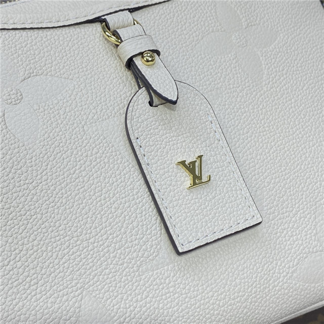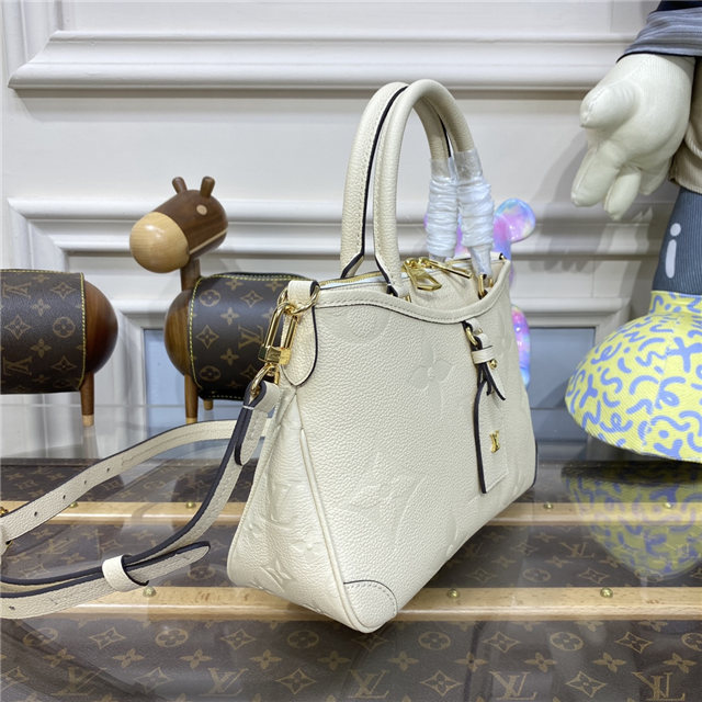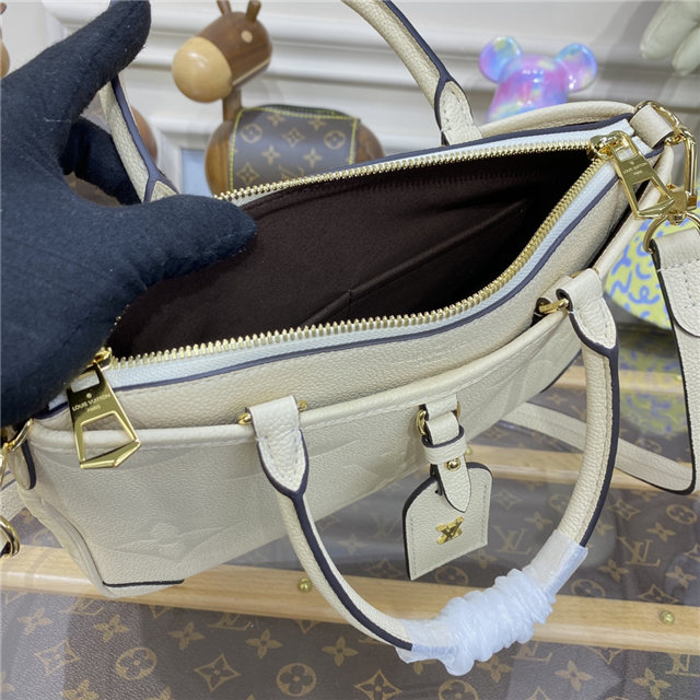 With its more compact format and multiple zipped compartments, this Trianon PM handbag in embossed Monogram Empreinte leather is the perfect alternative to the traditional tote. Its V-cut lines are inspired by the emblematic Louis Vuitton Pallas bag. Two top handles, as well as a detachable shoulder strap, make it comfortable to carry.
