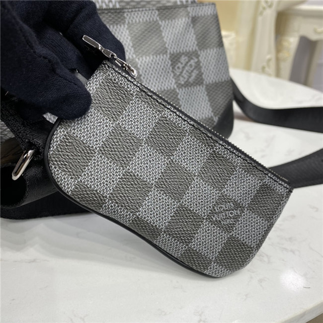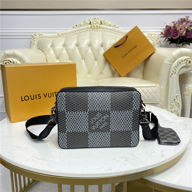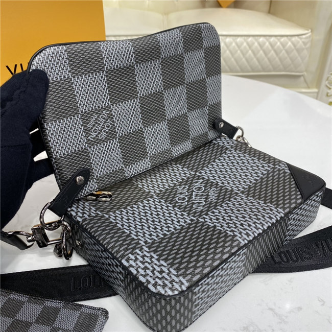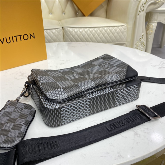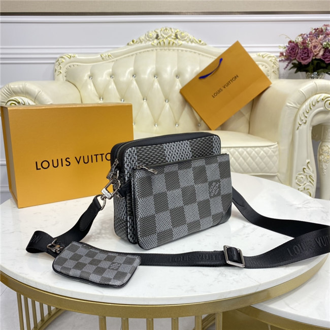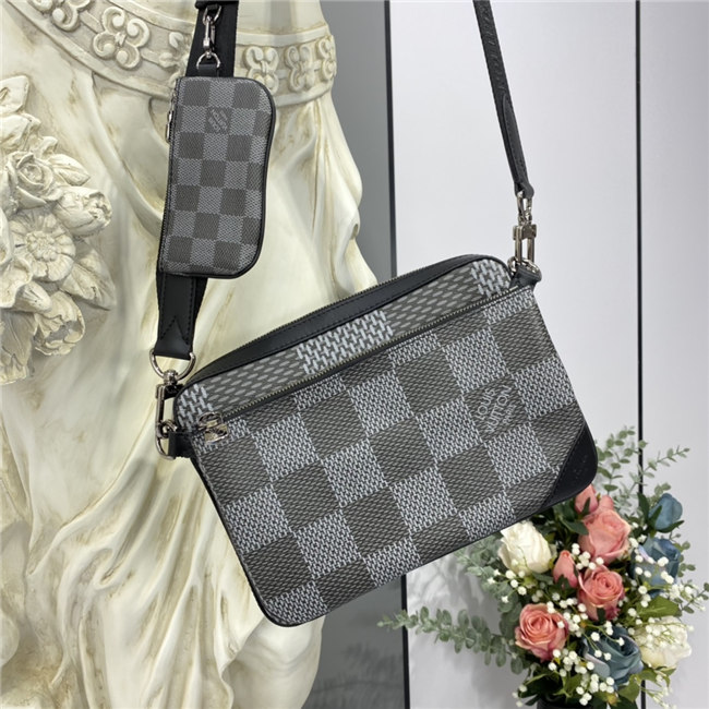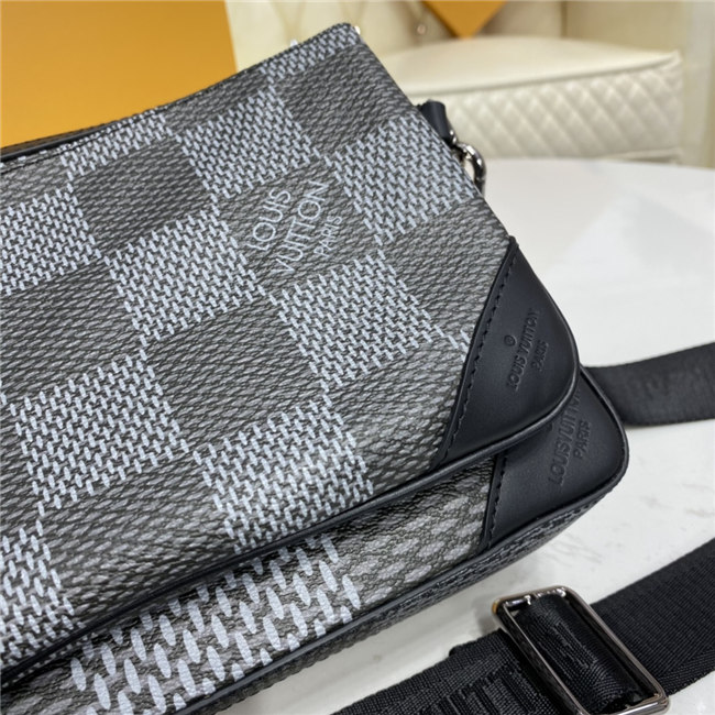 This new version of the Trio Messenger combines the versatility of a modular bag with the eye-catching elegance of Damier Graphite 3D canvas in subtle shades of gray. The removable zipped front pouch and coin purse make it a practical carrier for everyday necessities, and the adjustable strap guarantees comfortable cross-body wear.