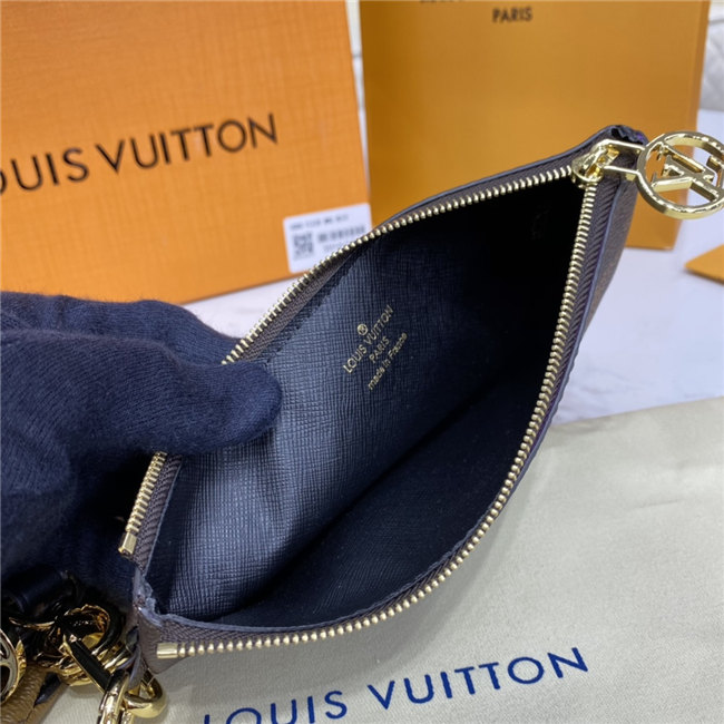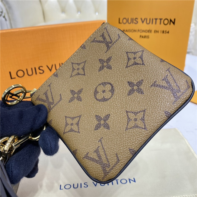 The Trio Pouch is an ingenious design combining three different pouches in three variations of Louis Vuitton”s iconic Monogram canvas. Ideal for essentials, the pouches can be used together or separately, and carried in the hand by the wristlet or attached to a bag or belt. They are secured with gold-tone LV Circle zips.