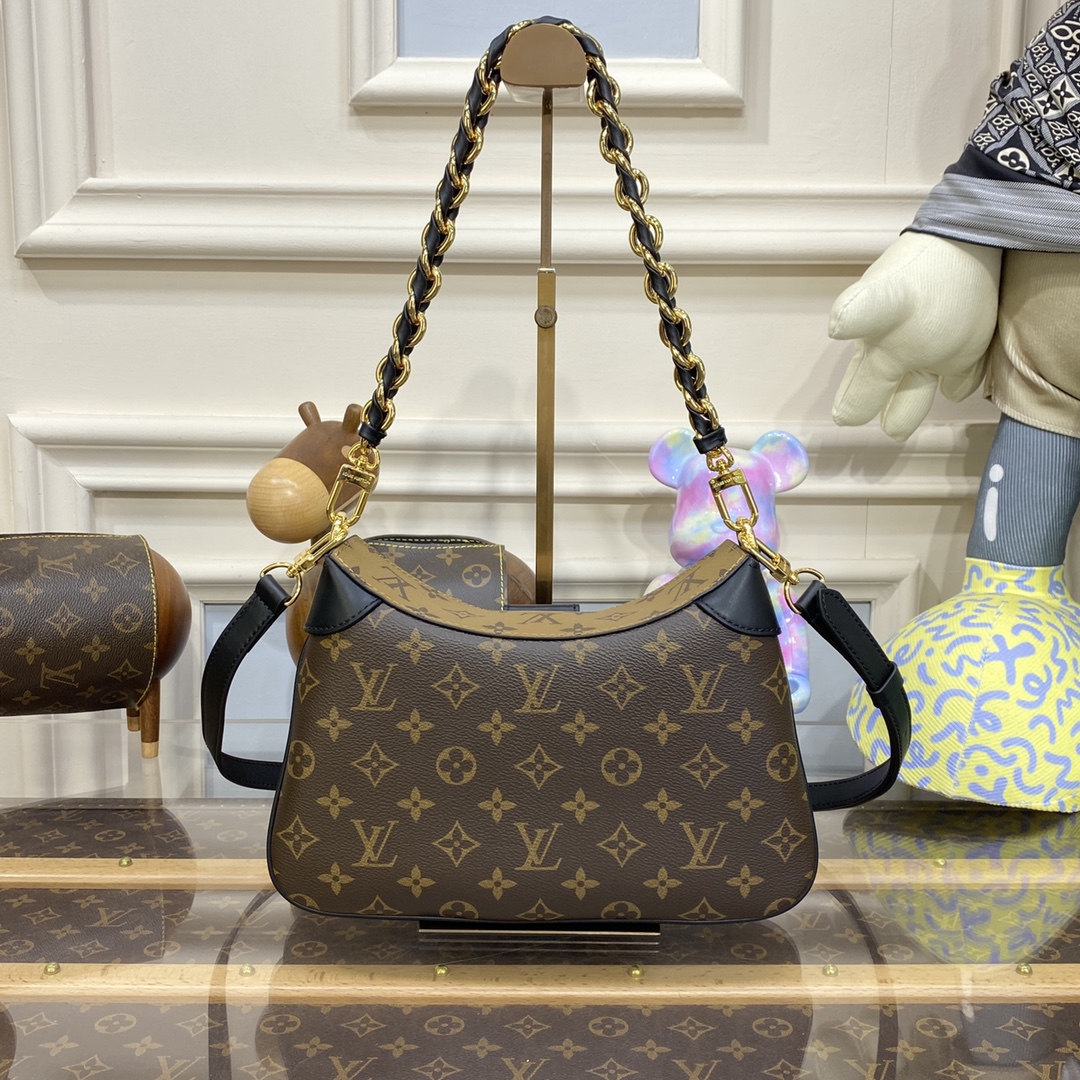 Inspired by the Maison’s archives, the casual yet sophisticated LV Twinny is the Monogram handbag of the season. Crafted from a mix of Monogram and Monogram Reverse canvas with black leather trim, it is detailed with an iconic S-lock and a braided chain handle. The bag lends itself to all manner of stylings: from elbow and shoulder to short or long cross-body wear.