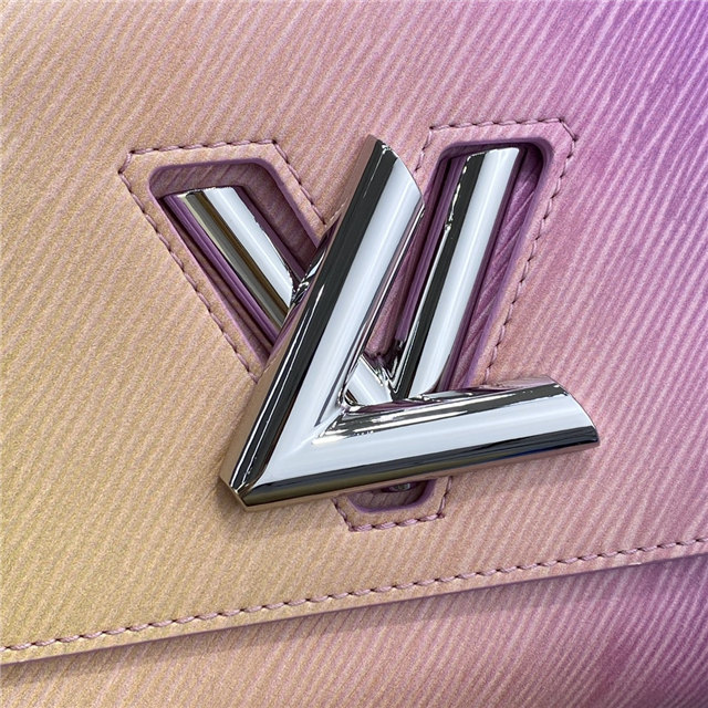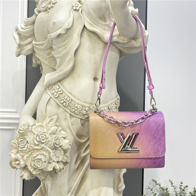 For Spring 22, a colorful reinterpretation of the Twist MM handbag. Inspired by the colors of sunrise, the fresh orange fades delicately into pink, a perfect summer colorway, on this Twist MM handbag. The grain of the Epi leather enhances the gradient combination of the two colors. It has a chunky, bicolor chain and a removable and adjustable, leather shoulder strap, allowing multiple carrying options.