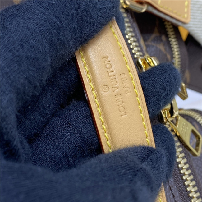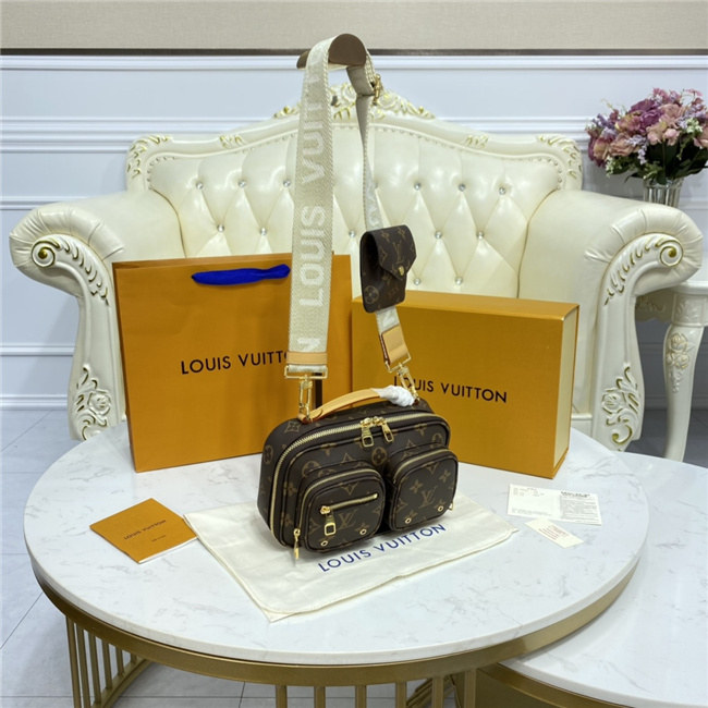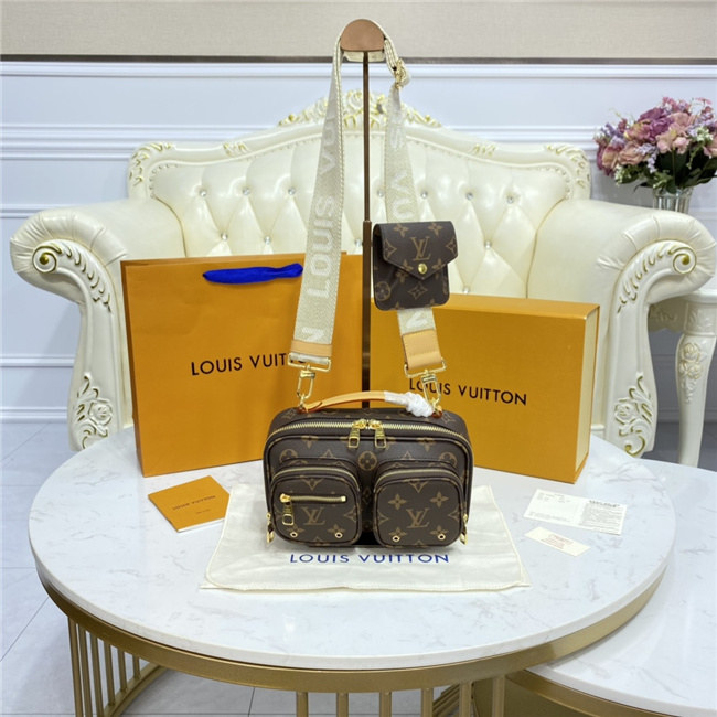 The sporty Utility Crossbody bag is made from Monogram canvas with a top handle and zip pulls in natural leather. A very functional bag, it has multiple outside zipped pockets for quick access to belongings. Its compact shape makes it lightweight while the wide adjustable strap means it’s comfortable to carry.