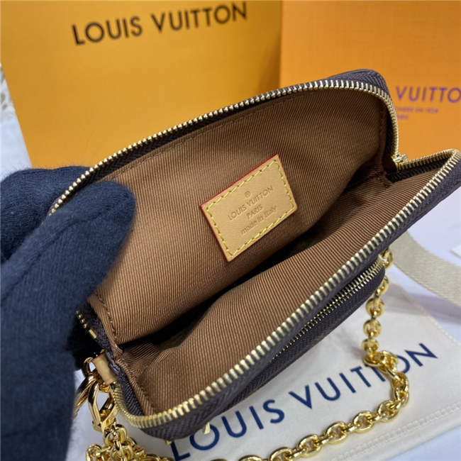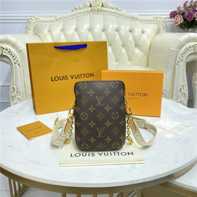 The Utility Phone Sleeve in Monogram canvas is an on-trend, multi-tasking bag for life on the go. It adapts to different sizes of smartphone and can also hold essentials like cards, cash or keys in its secure, zipped pockets. Both the adjustable canvas strap and the metal chain are removable and offer multiple carry options.
