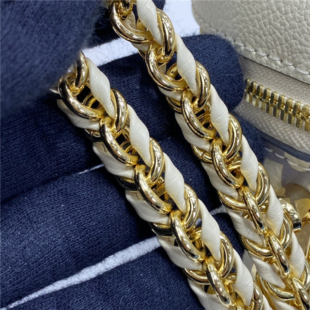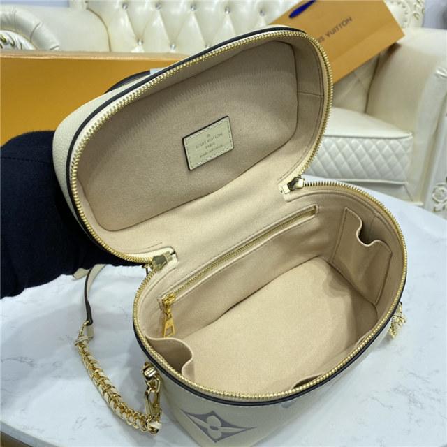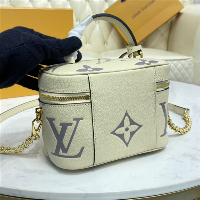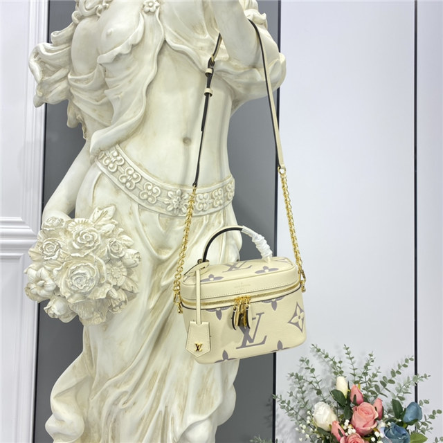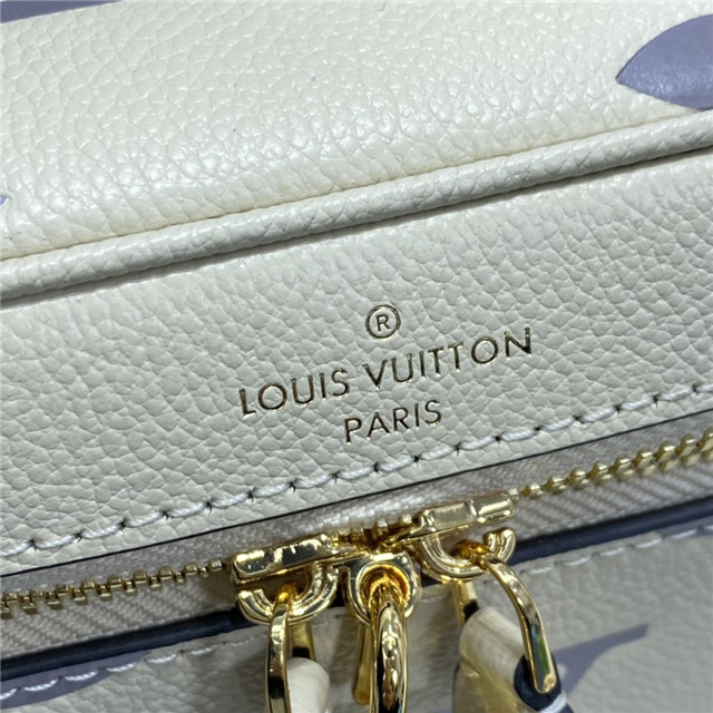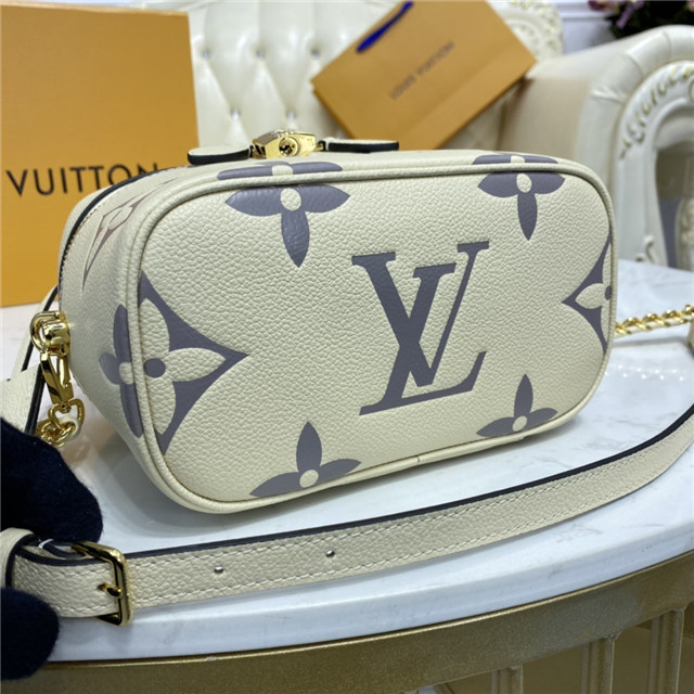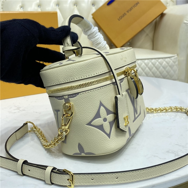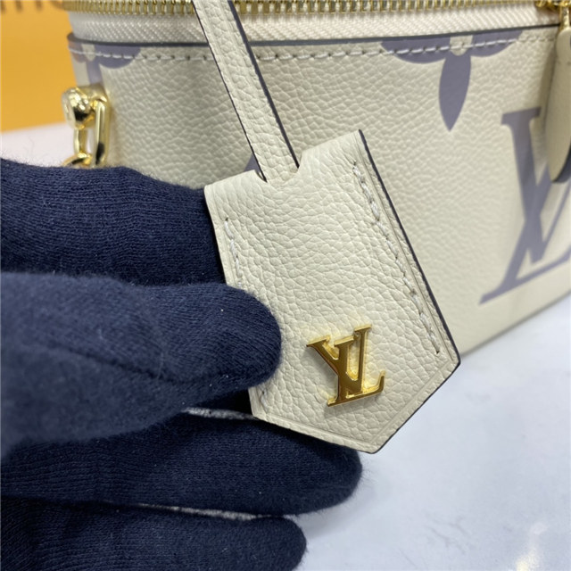 Inspired by the Monogram Nice Vanity, the Vanity PM handbag in Monogram Empreinte leather is a fashionably small bag with a distinctive shape. It is made from grained leather, embossed with the Giant Monogram motif. Its tassel zip pulls, ladylike top handle, and removable strap make it versatile and strikingly stylish.