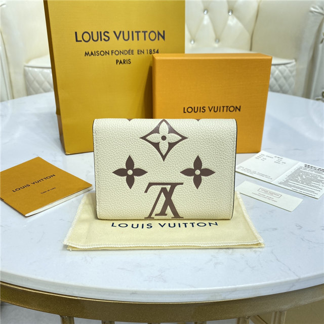 The Victorine wallet is crafted from supple, grained Monogram Empreinte leather, which is embossed with Louis Vuitton”s signature Monogram pattern. The motif is highlighted by the bicolor leather, bringing added refinement to this wallet which – though small in size – offers ample space for bills, coins and cards.