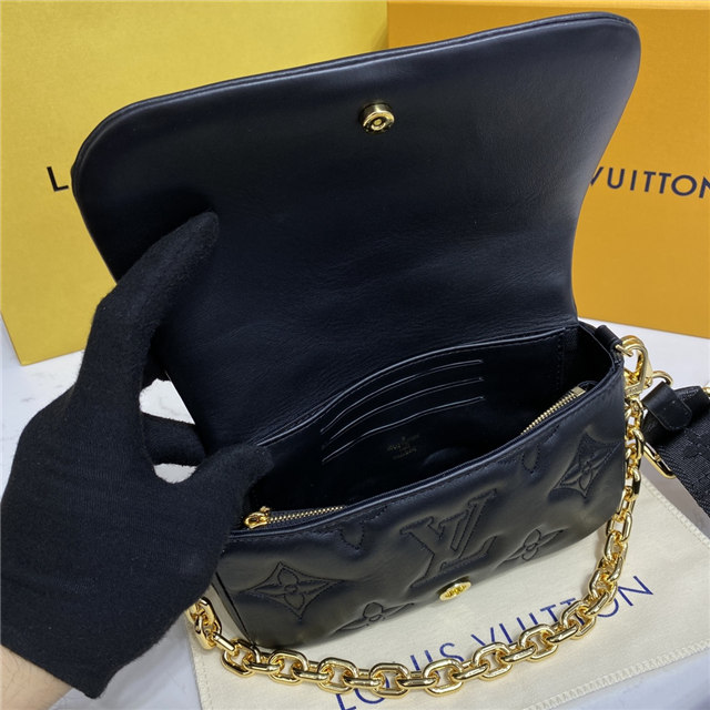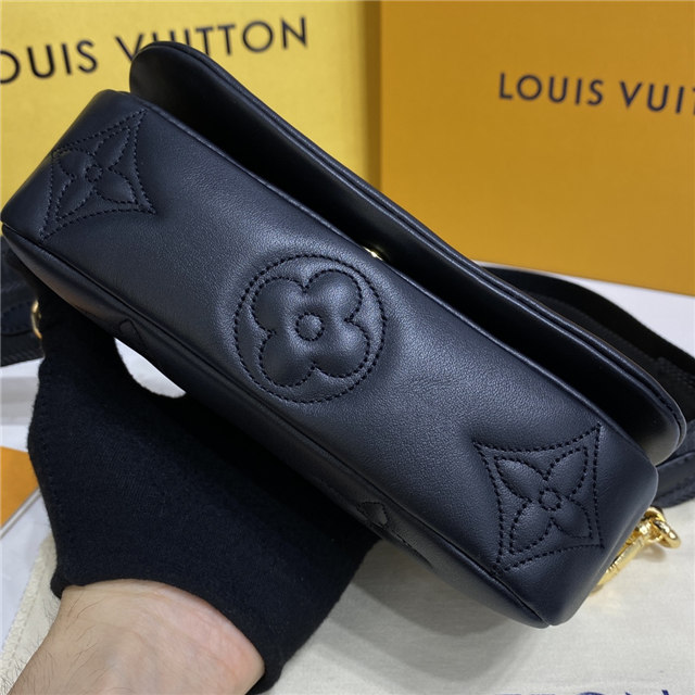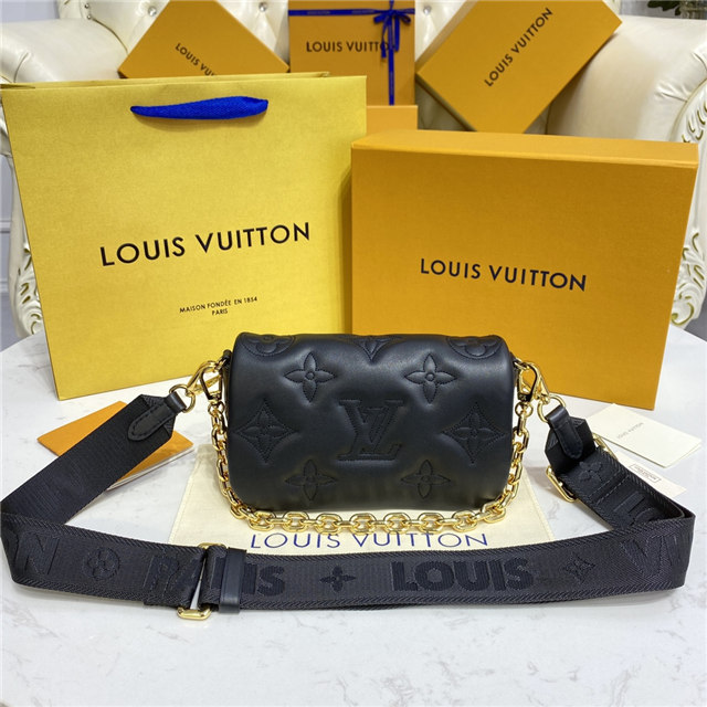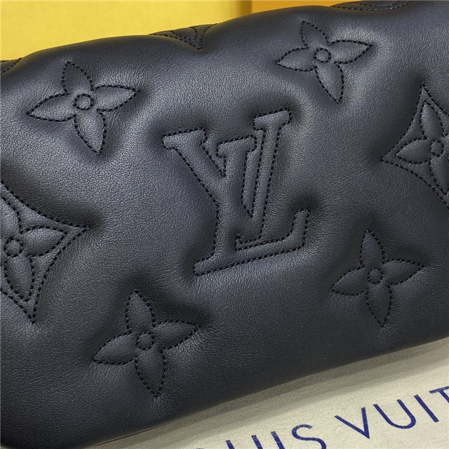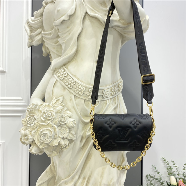 Part of the Bubblegram line, this Wallet on Strap is crafted from soft, padded calfskin, embroidered with the iconic Monogram pattern. This practical, on-trend wallet, which is secured by a magnetic flap, comes with a sporty nylon strap for shoulder or cross-body carry. When the strap is removed, it transforms into a chic, evening-ready clutch.