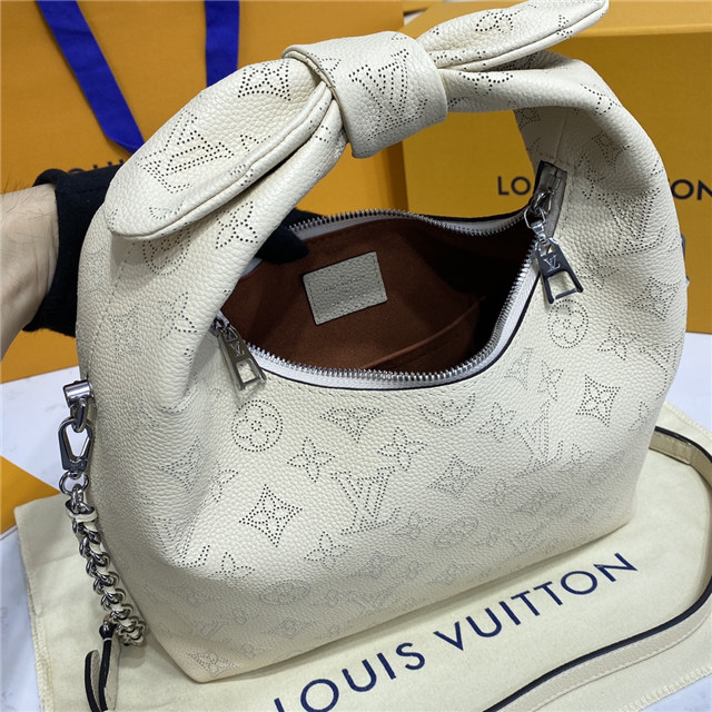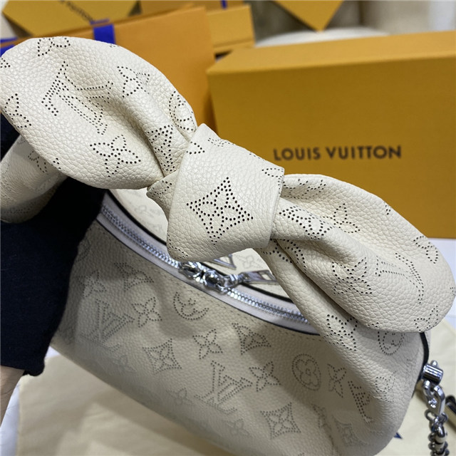 Feminine, modern, and very body-friendly, the Why Knot PM handbag is made from the House’s emblematic Mahina calf leather, with its perforated Monogram pattern. Immediately recognizable by its knot-shape handle, this functional bag is perfect for daily essentials like a phone, wallet, keys and sunglasses. The removable braided-leather chain enables shoulder and cross-body wear.