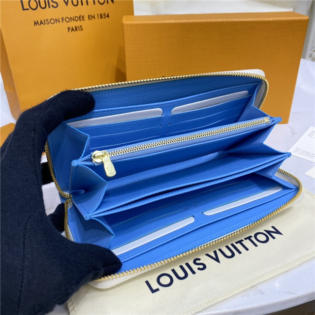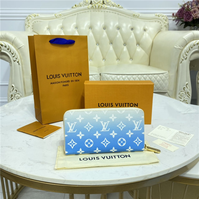 This special edition of Louis Vuitton”s emblematic Zippy wallet comes in Monogram canvas with a color gradation effect. It is part of the By The Pool capsule collection of accessories, leather goods and ready-to-wear for Summer 2021. This sleek wallet unzips to reveal a well-organized interior with ample space for cards, bills and coins.