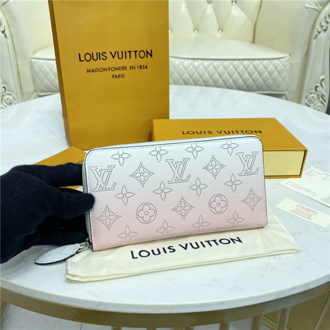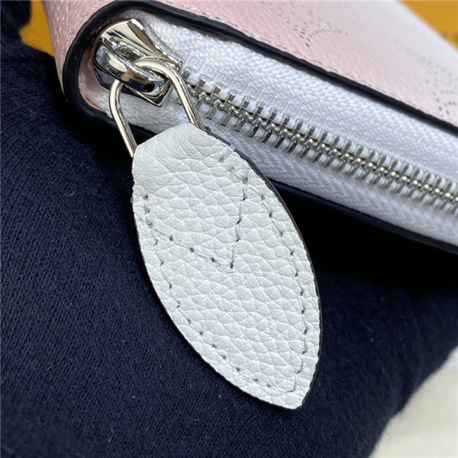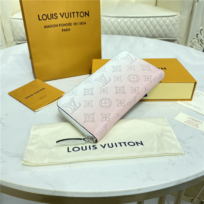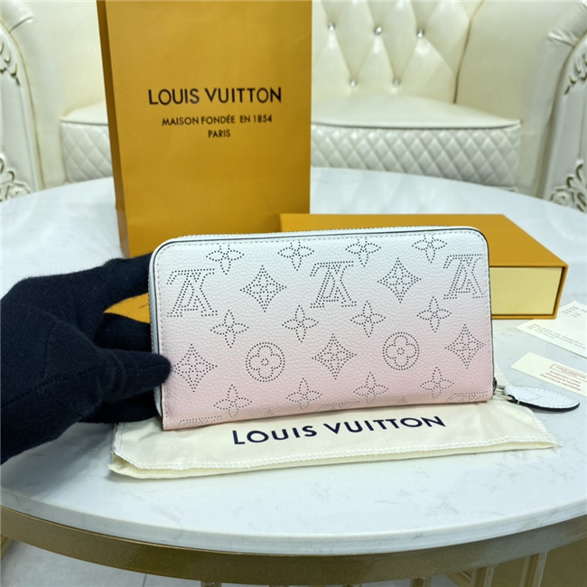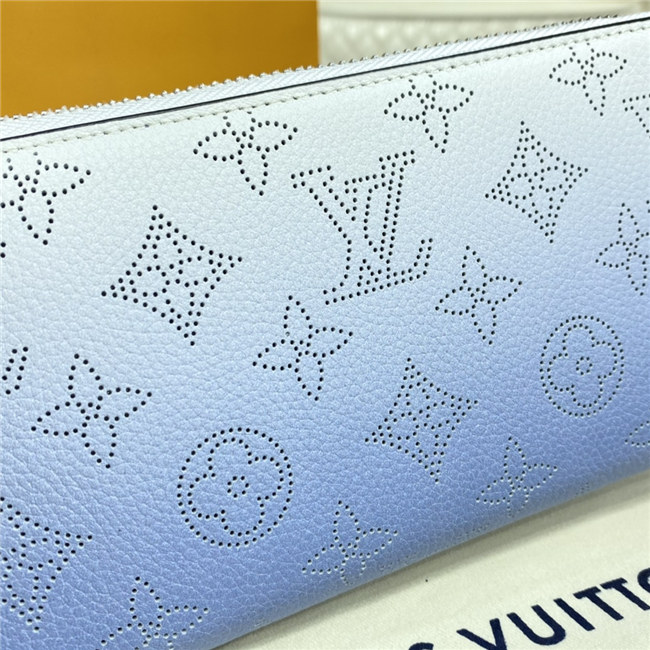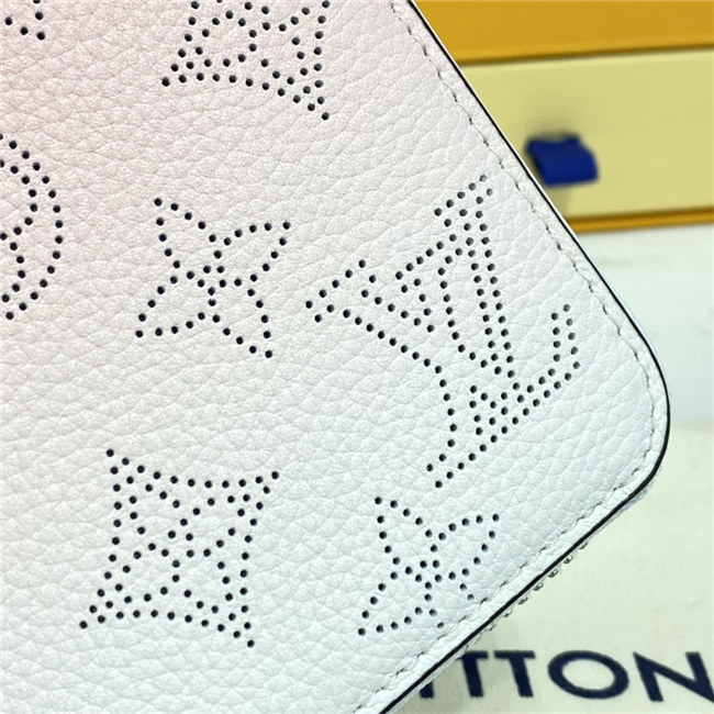 The Zippy wallet is revisited in soft Mahina calf leather with a perforated Monogram pattern and a delicate color gradation. A contrasting leather lining and silver-tone hardware add to the refinement of this design. This wallet is notable for its secure, all-round zip and well-designed interior with multiple pockets and card slots.