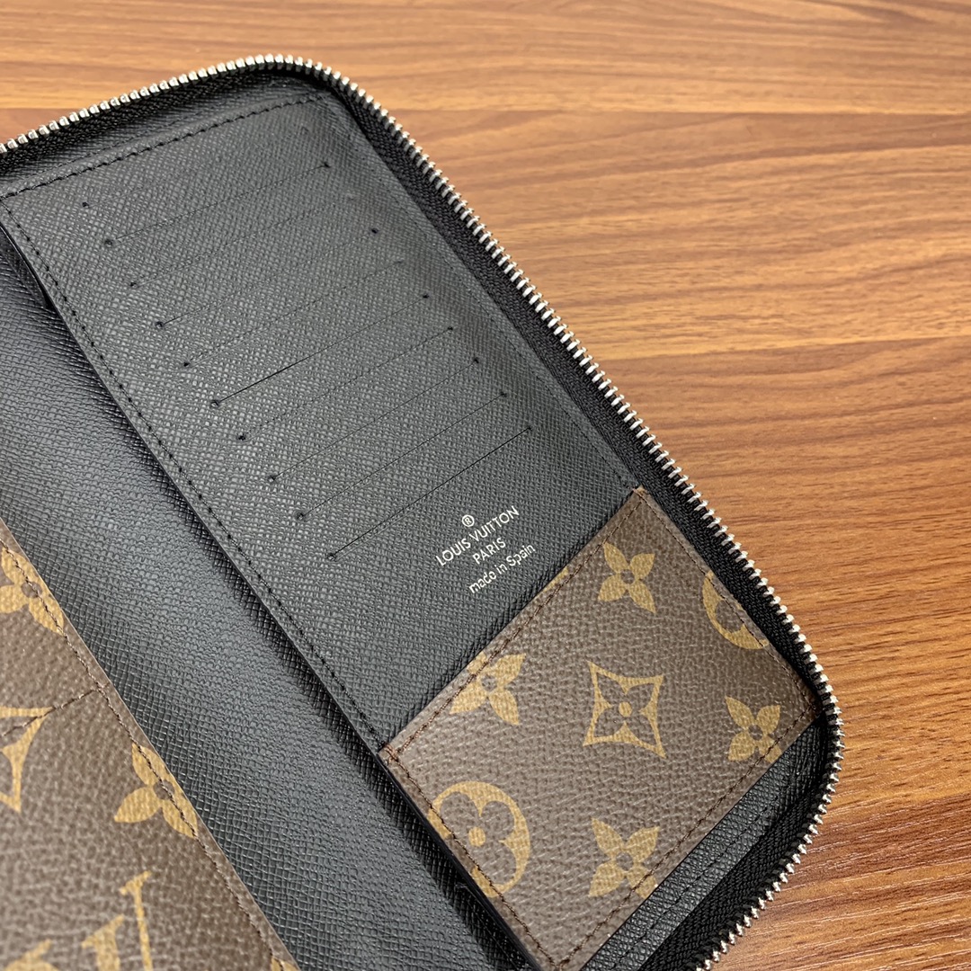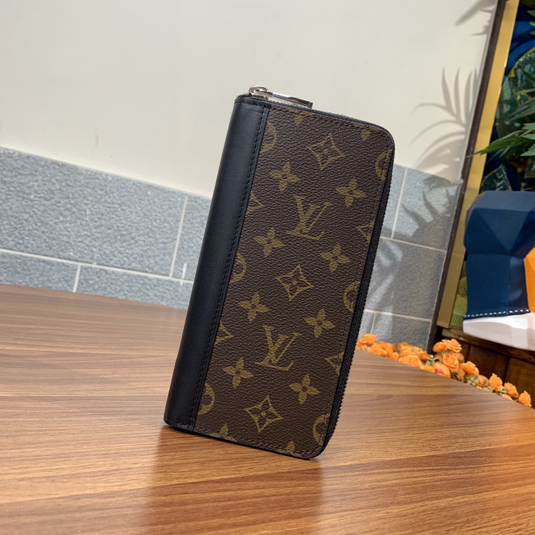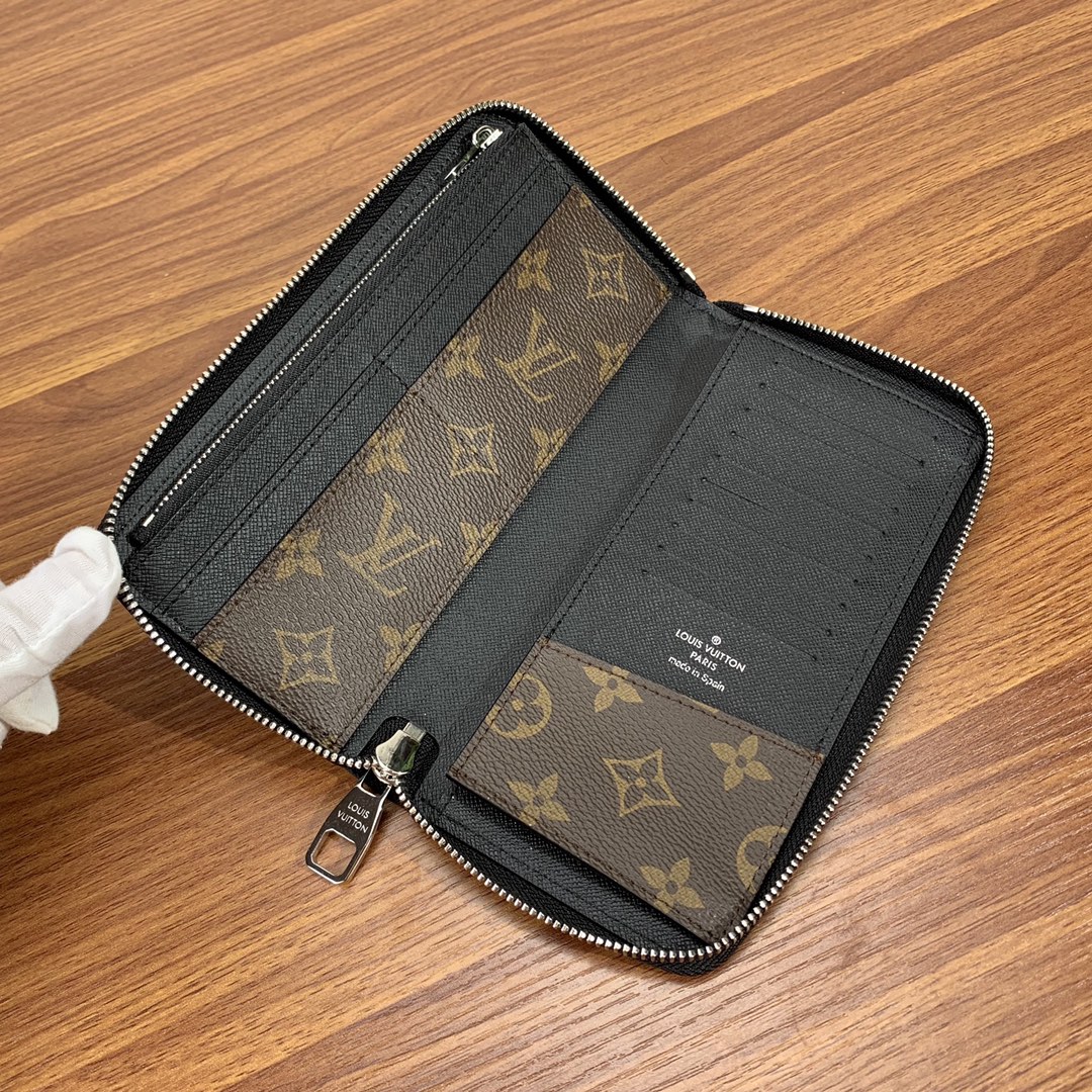 The Vertical Zip Wallet from the Premium Original Factory combines effortless cash, card, and coin carrying with a touch of style. Made with elegant Monogram Macassar canvas, this wallet is durable and practical, featuring multiple pockets and compartments for organization.”