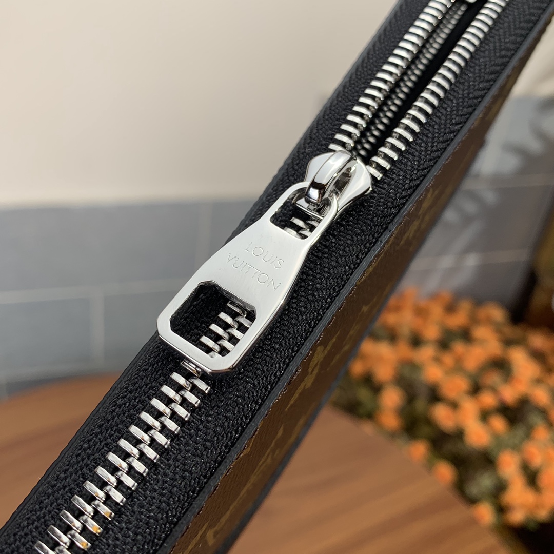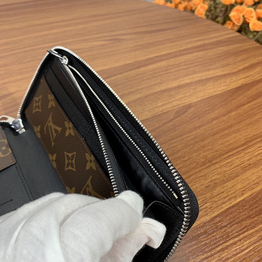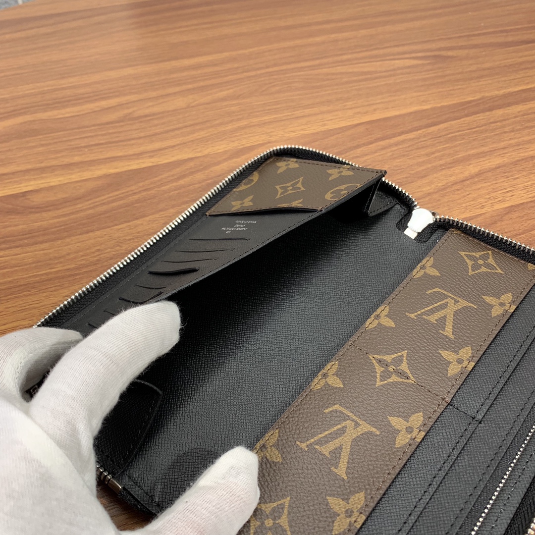 The Vertical Zip Wallet from the Premium Original Factory combines effortless cash, card, and coin carrying with a touch of style. Made with elegant Monogram Macassar canvas, this wallet is durable and practical, featuring multiple pockets and compartments for organization.”