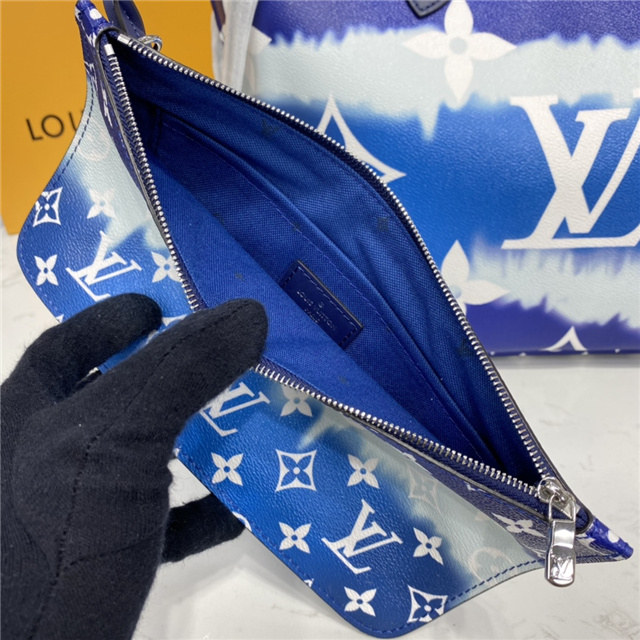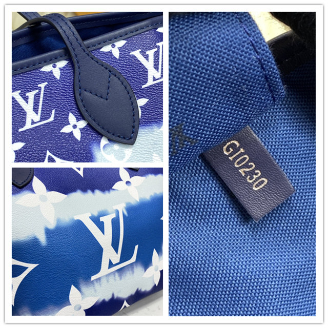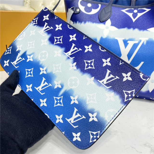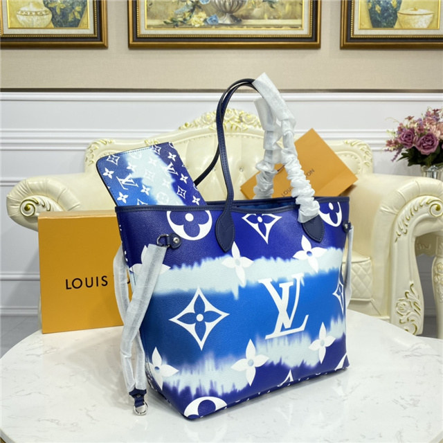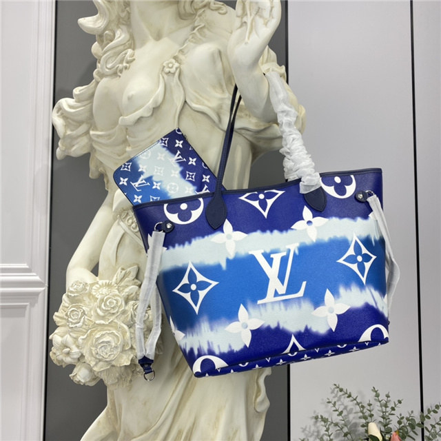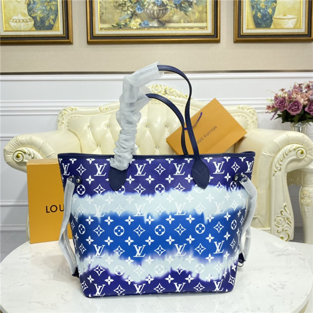 Inspired by the ancient Japanese technique of knotting and folding fabric before dyeing it, the LV Escale Collection brings a touch of summer to the Neverfull MM tote in a Tie-Dye Monogram canvas. Tighten the laces and this versatile tote bag becomes a smaller, stylish city bag.