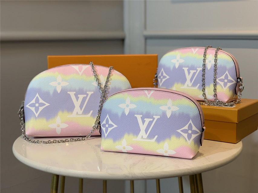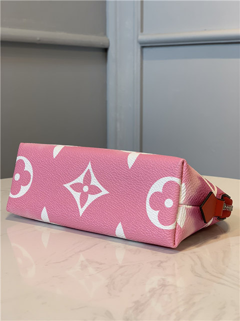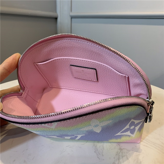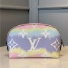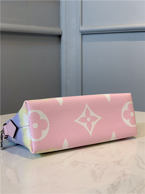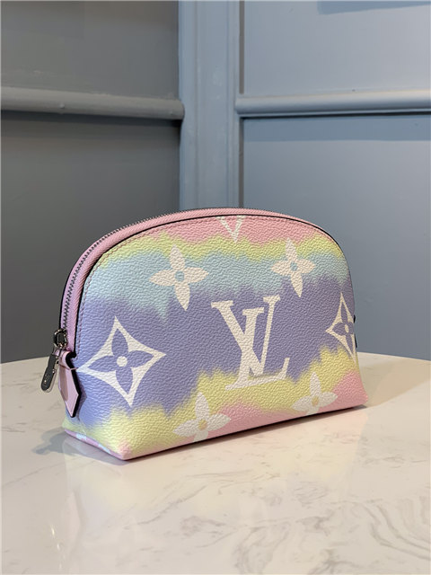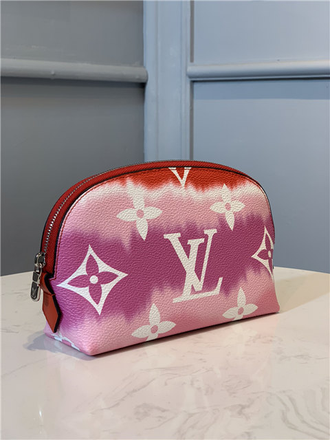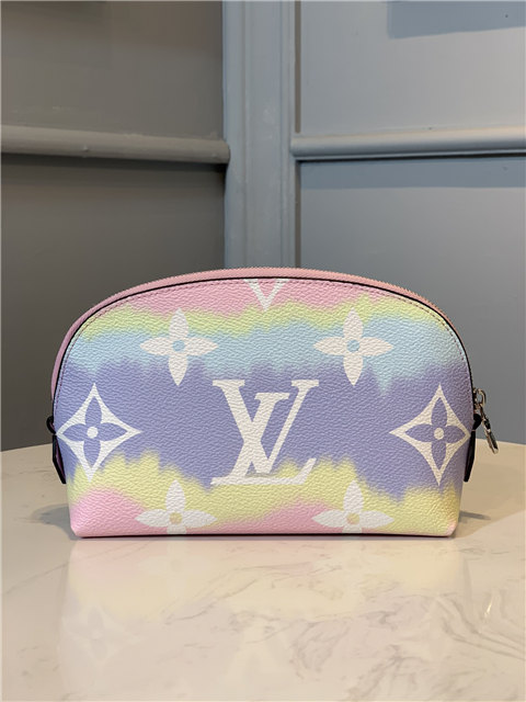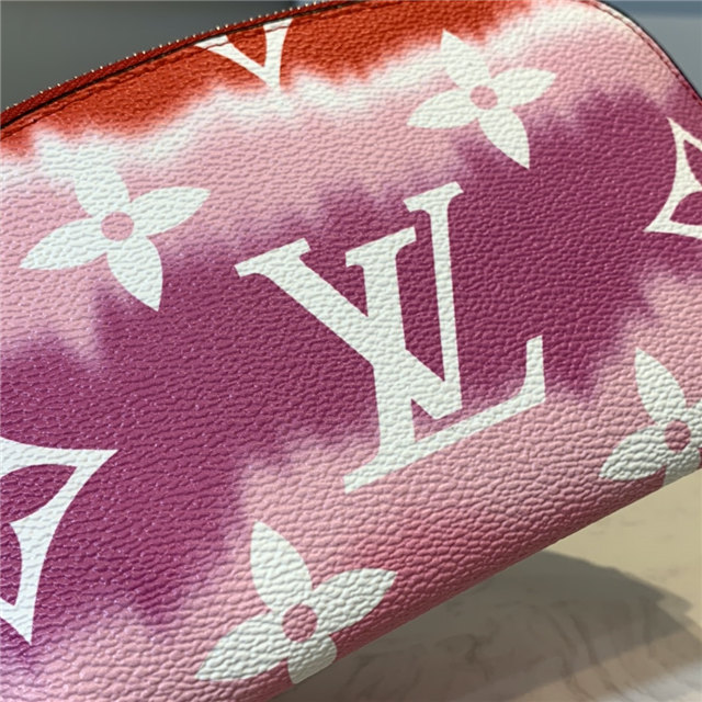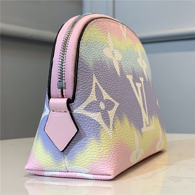 For Summer 2020, the Cosmetic Pouch is revisited in Monogram Giant canvas with a tie-dye print as part of the LV Escale collection of accessories and leather goods. The ideal makeup bag both for travel and every day, this surprisingly spacious pouch features a wide zippered opening and a washable lining.