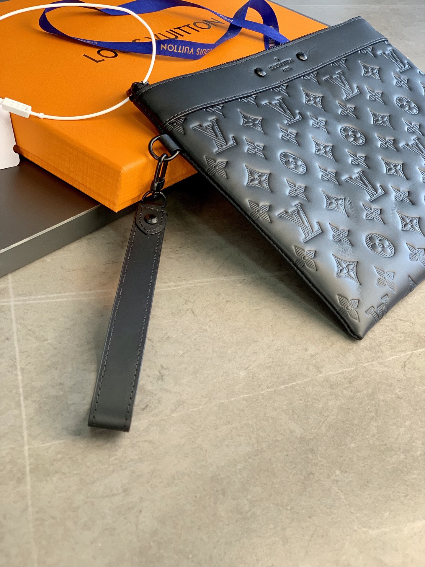 Top-grade original factory M81570 New Embossed! The brand new Pochette To-Go clutch is made from Monogram Shadow embossed leather, featuring a discreet rivet tag that showcases the brand’s style. With ample space to accommodate documents, small electronic devices, and personal belongings, it offers the convenience of a detachable wrist strap for easy carrying, making it a trendy choice beyond traditional handbags or briefcases.