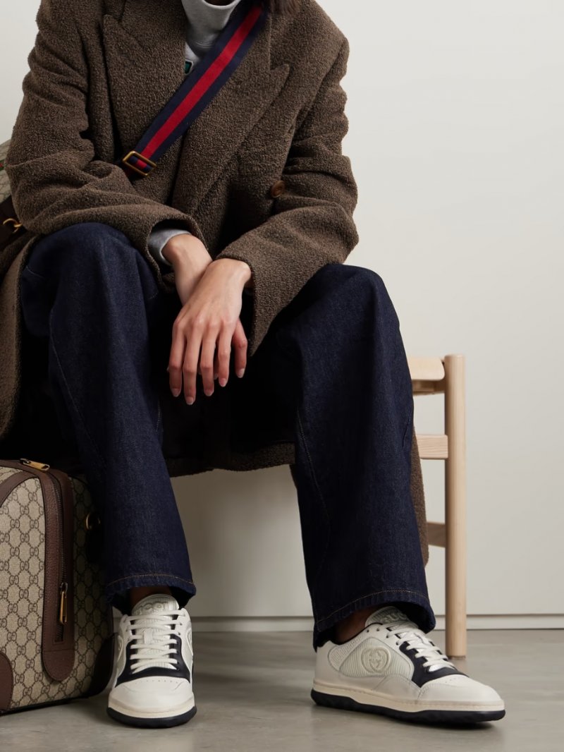 - White and black leather (Cow), white ribbed-knit