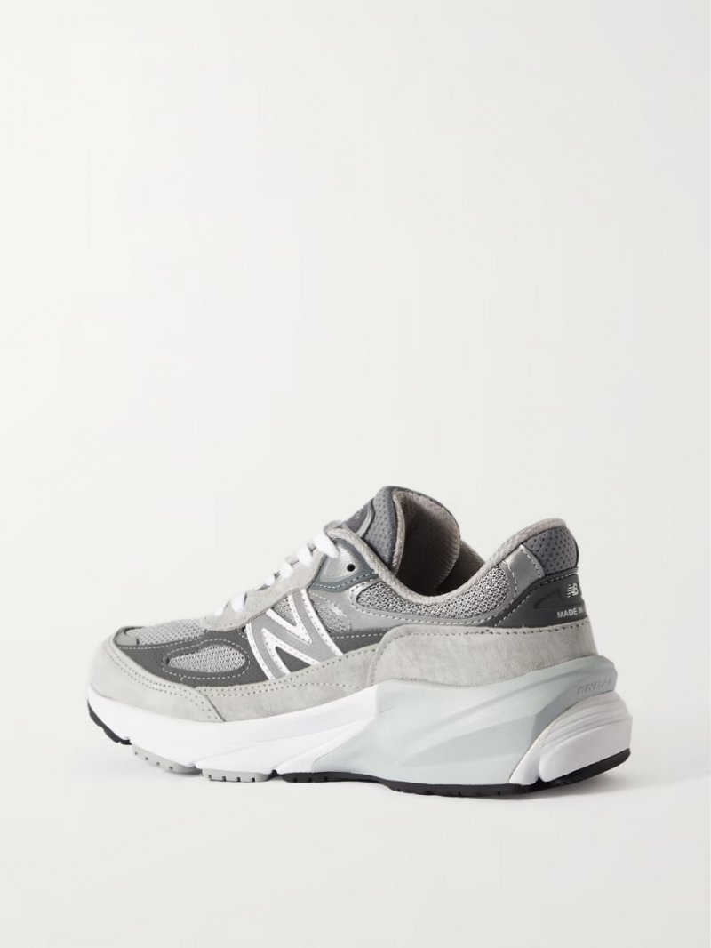 - Tonal-gray suede and mesh, tonal-gray and white leather