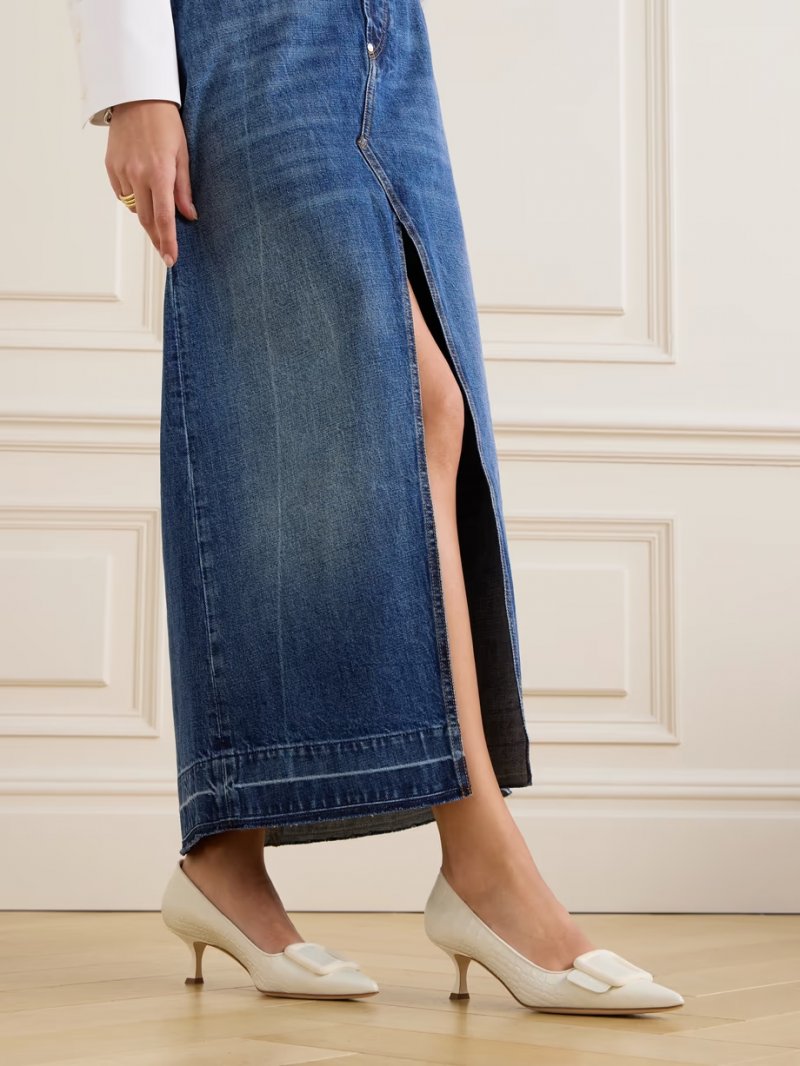 - Off-white croc-effect leather (Calf) and suede (Goat)