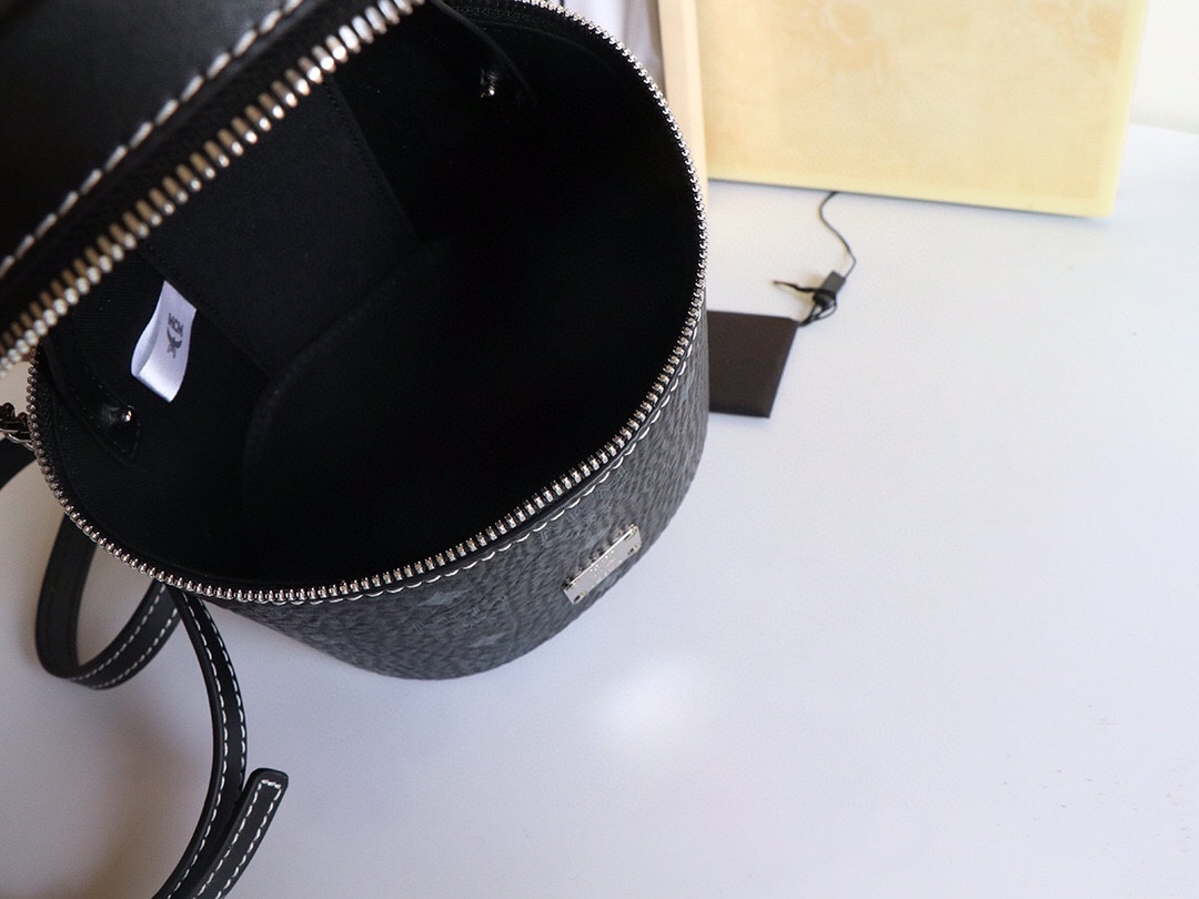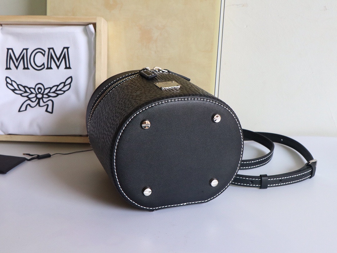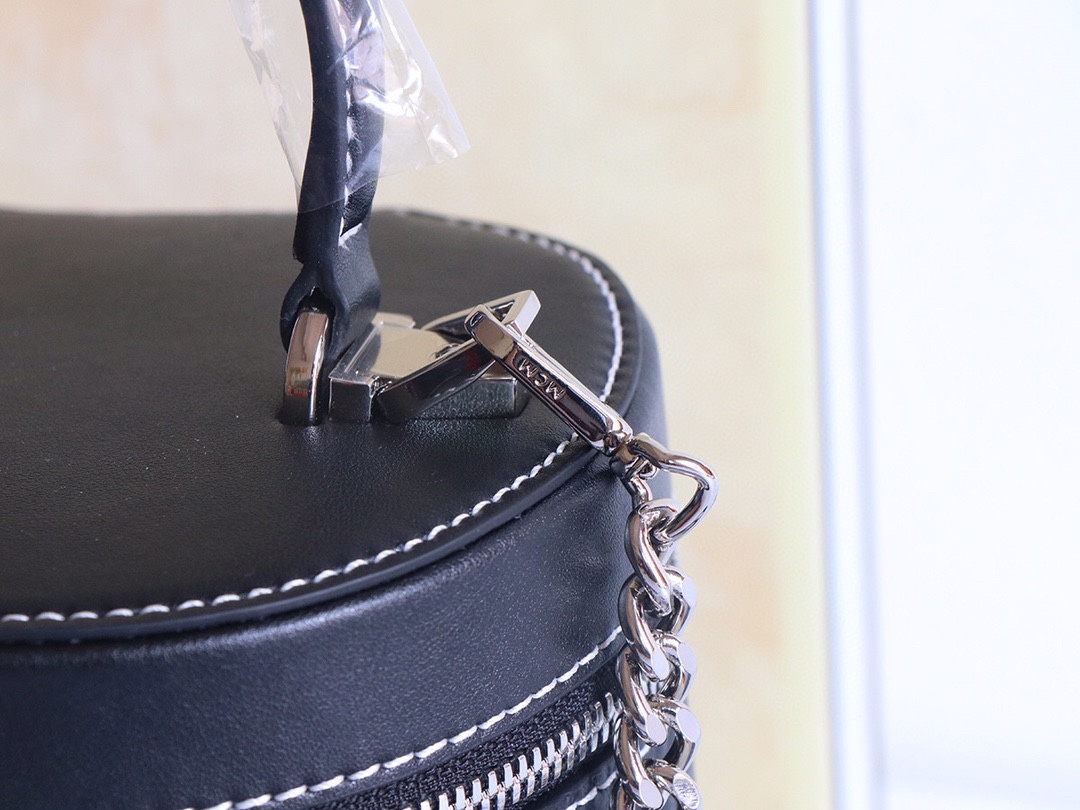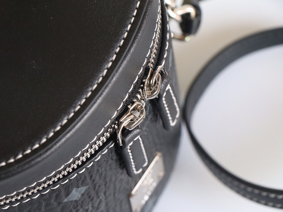 The cylindrical bag features a classic geometric design with a dual-way zipper closure. The spacious interior is lined with fabric, allowing you to store your valuable items. This round-shaped crossbody bag can be carried using the top leather handle or the included crossbody shoulder strap to enhance its portability.