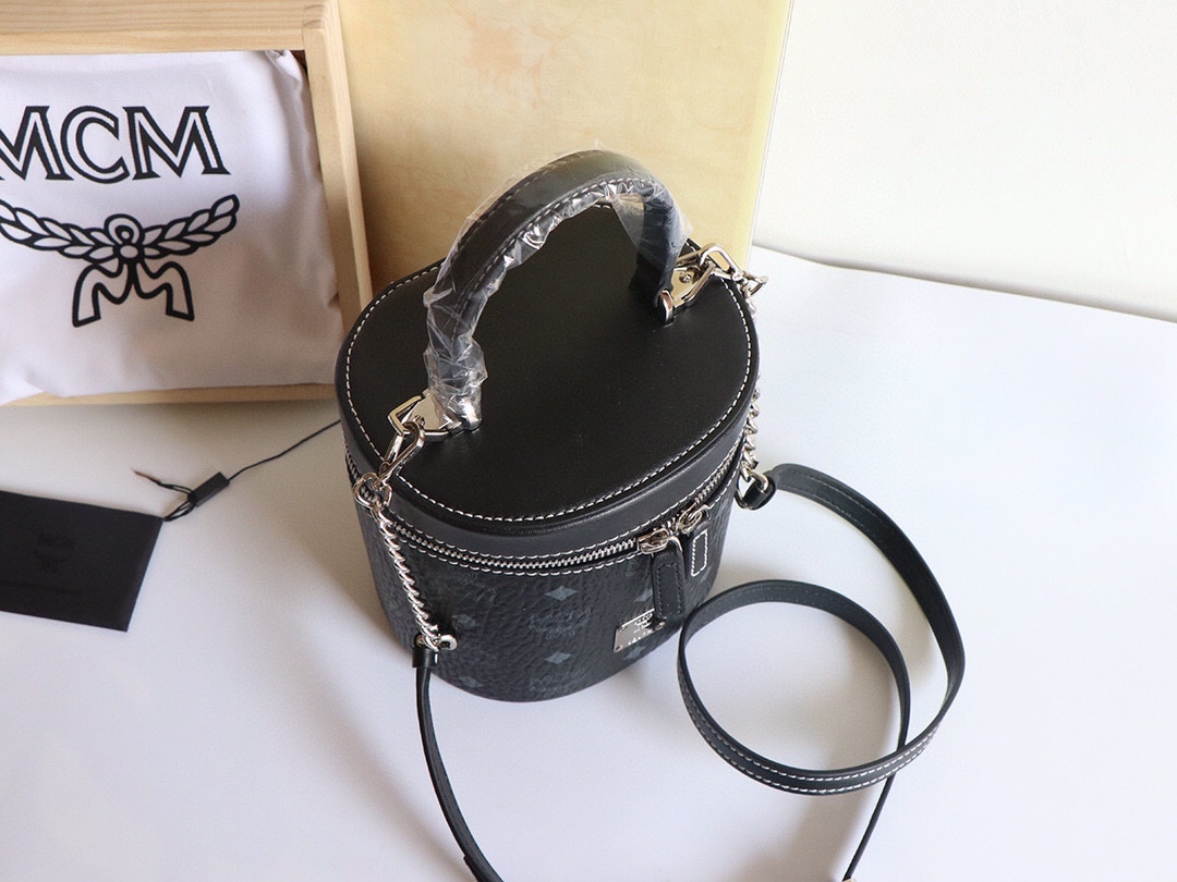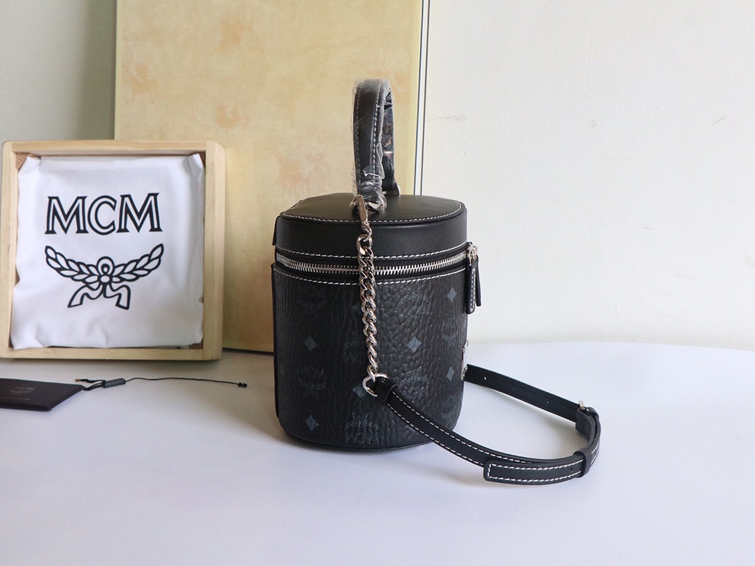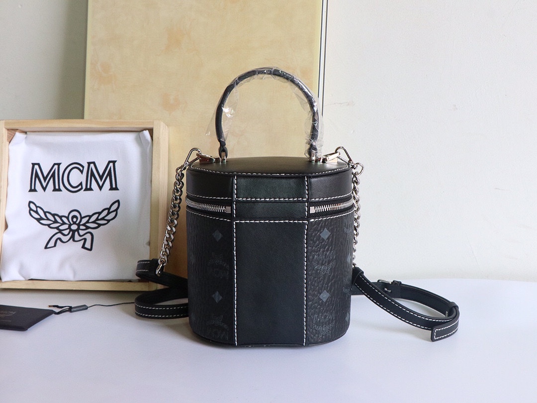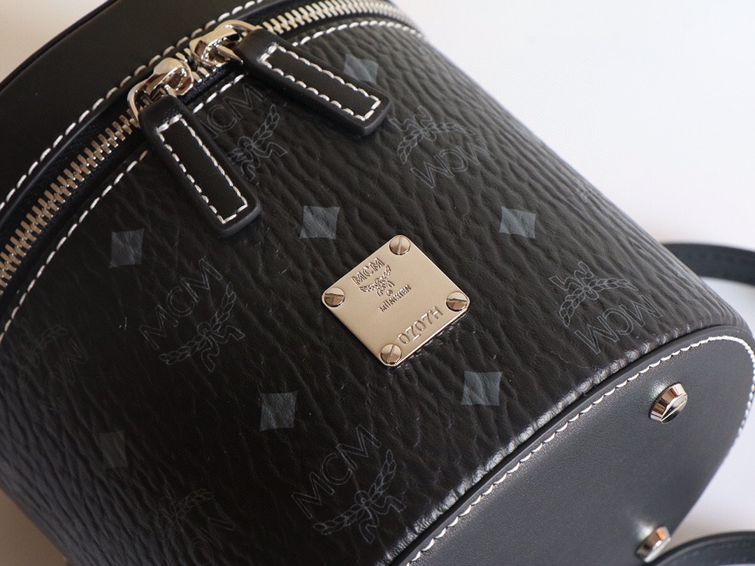 The cylindrical bag features a classic geometric design with a dual-way zipper closure. The spacious interior is lined with fabric, allowing you to store your valuable items. This round-shaped crossbody bag can be carried using the top leather handle or the included crossbody shoulder strap to enhance its portability.