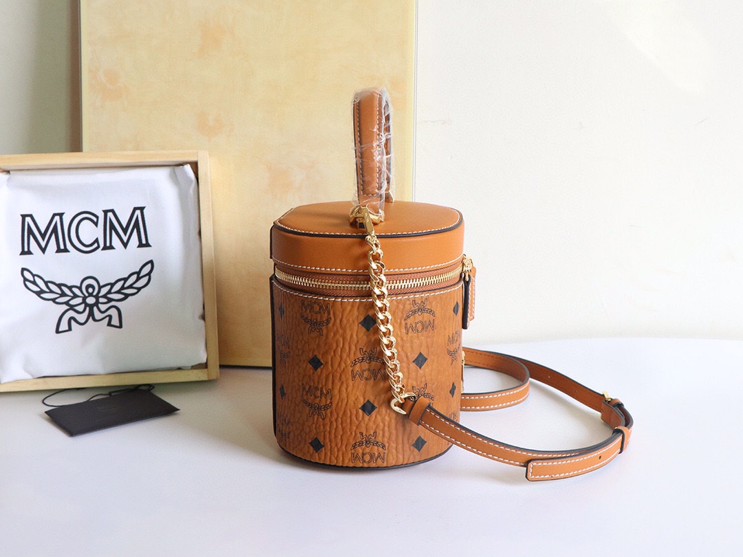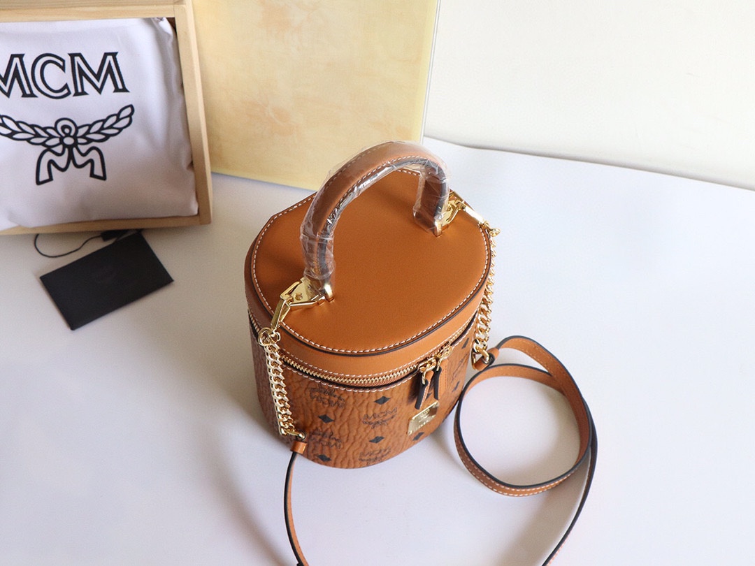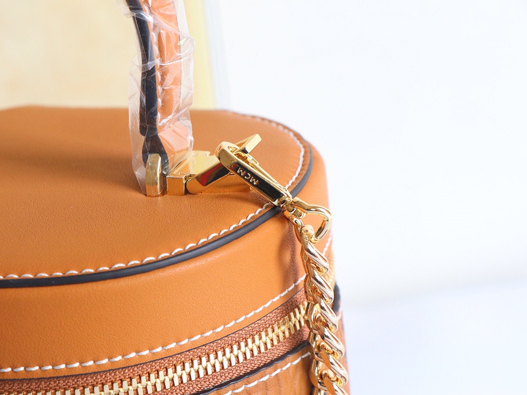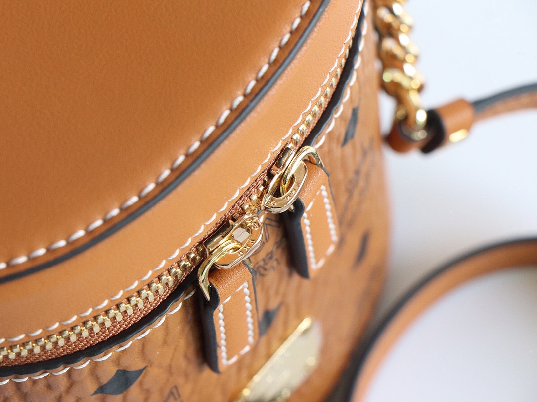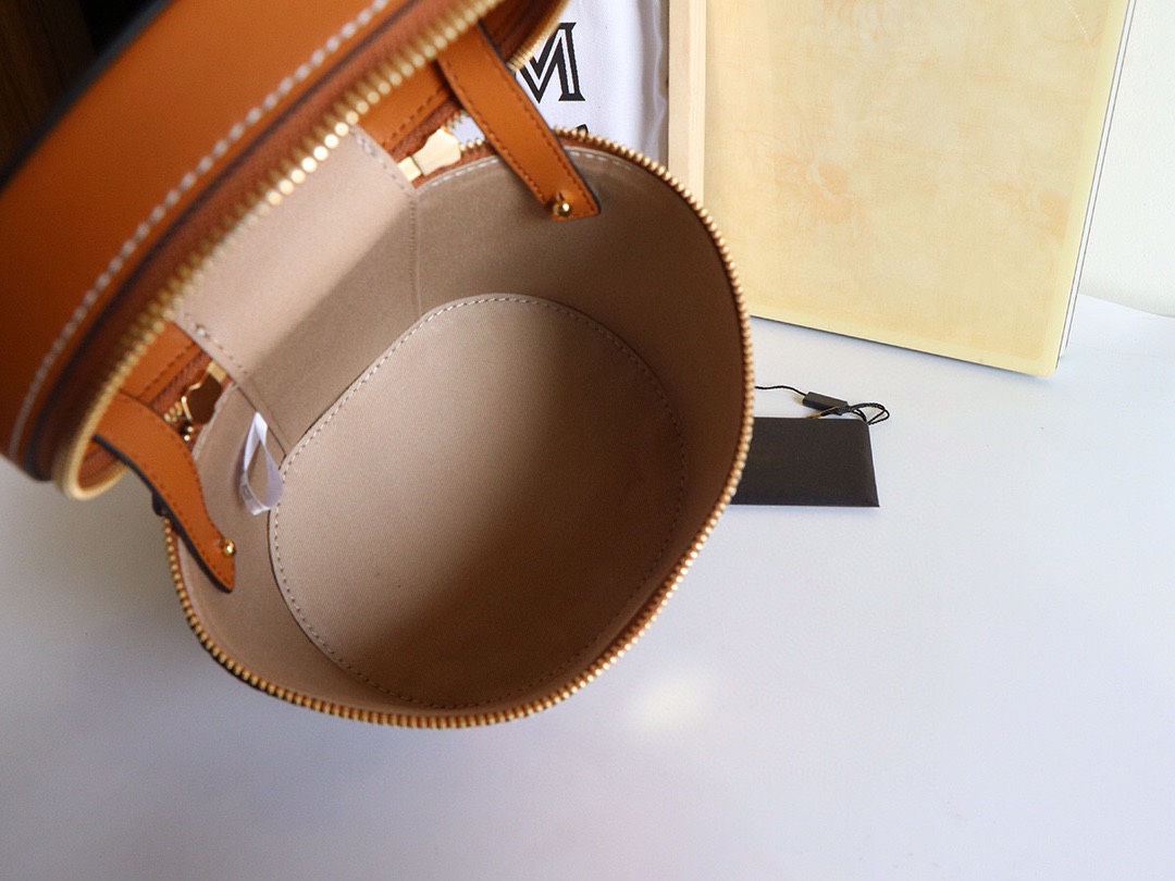 The cylindrical bag features a classic geometric design with a dual-way zipper closure. The spacious interior is lined with fabric, allowing you to store your valuable items. This round-shaped crossbody bag can be carried using the top leather handle or the included crossbody shoulder strap to enhance its portability.