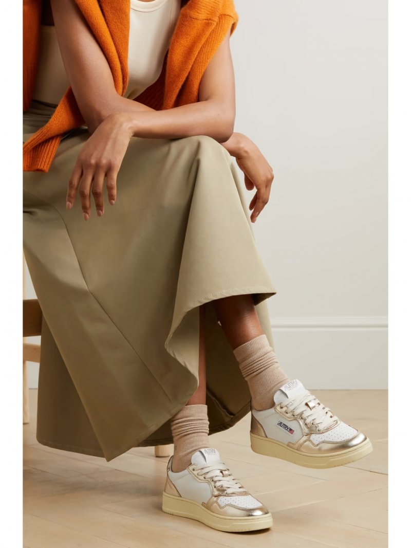 - White and gold leather