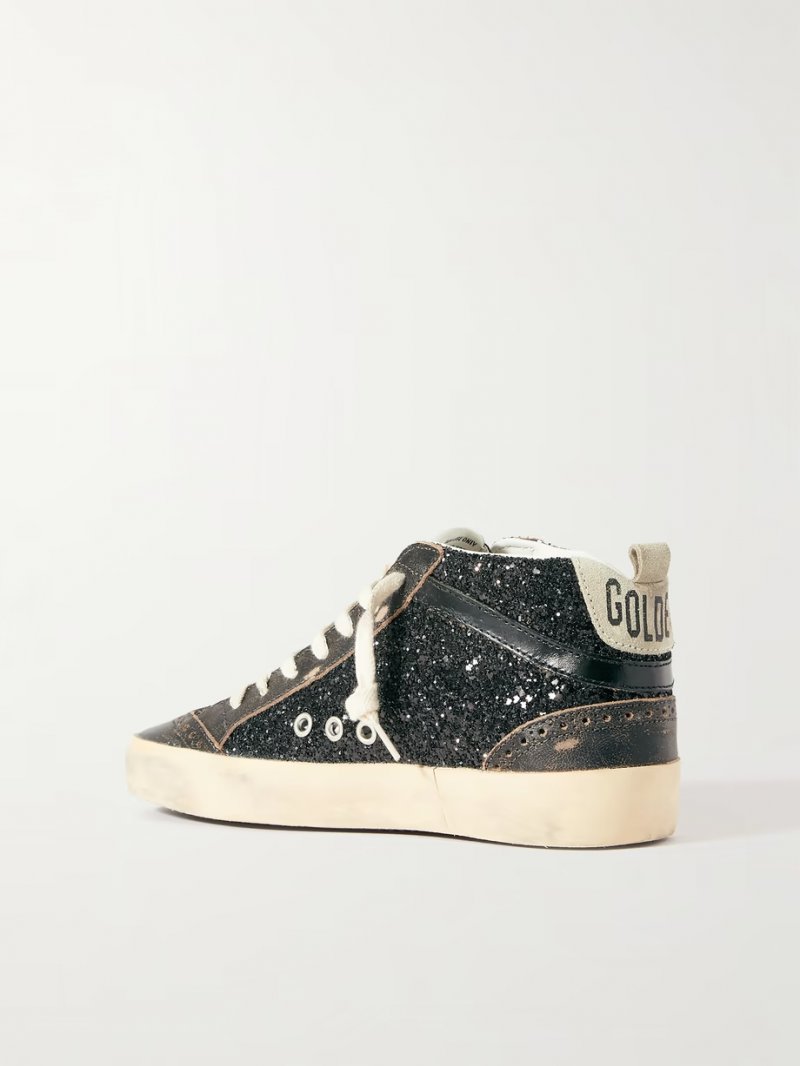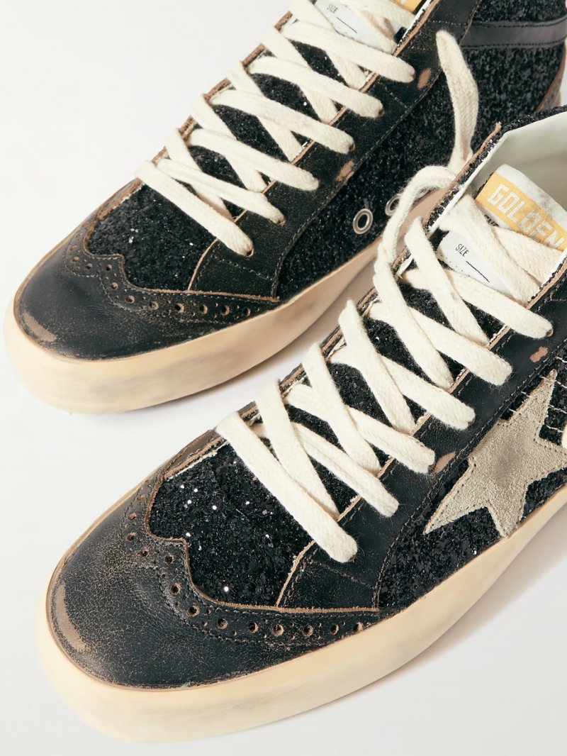 - Black glittered faux leather, taupe suede, black leather (Cow)