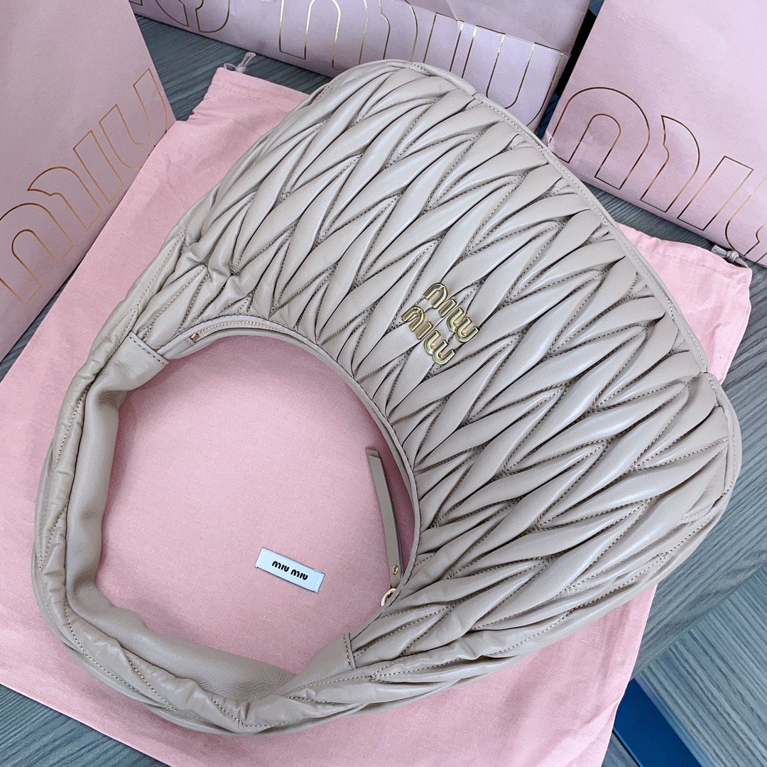 Miu Miu introduces the new MiuWander handbag in a khaki apricot color. It is crafted from imported lambskin with the brand’s iconic Matelasse embroidery and vintage matte hardware, utilizing gentle curves to retain its inherent playfulness. The bag features a structured and stylish silhouette, exuding a strong and captivating personality. It can be both sweet and salty, and has become a must-have for fashion enthusiasts everywhere.