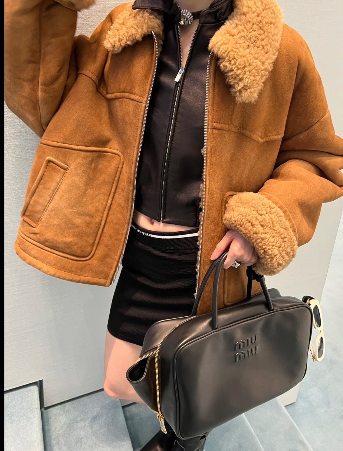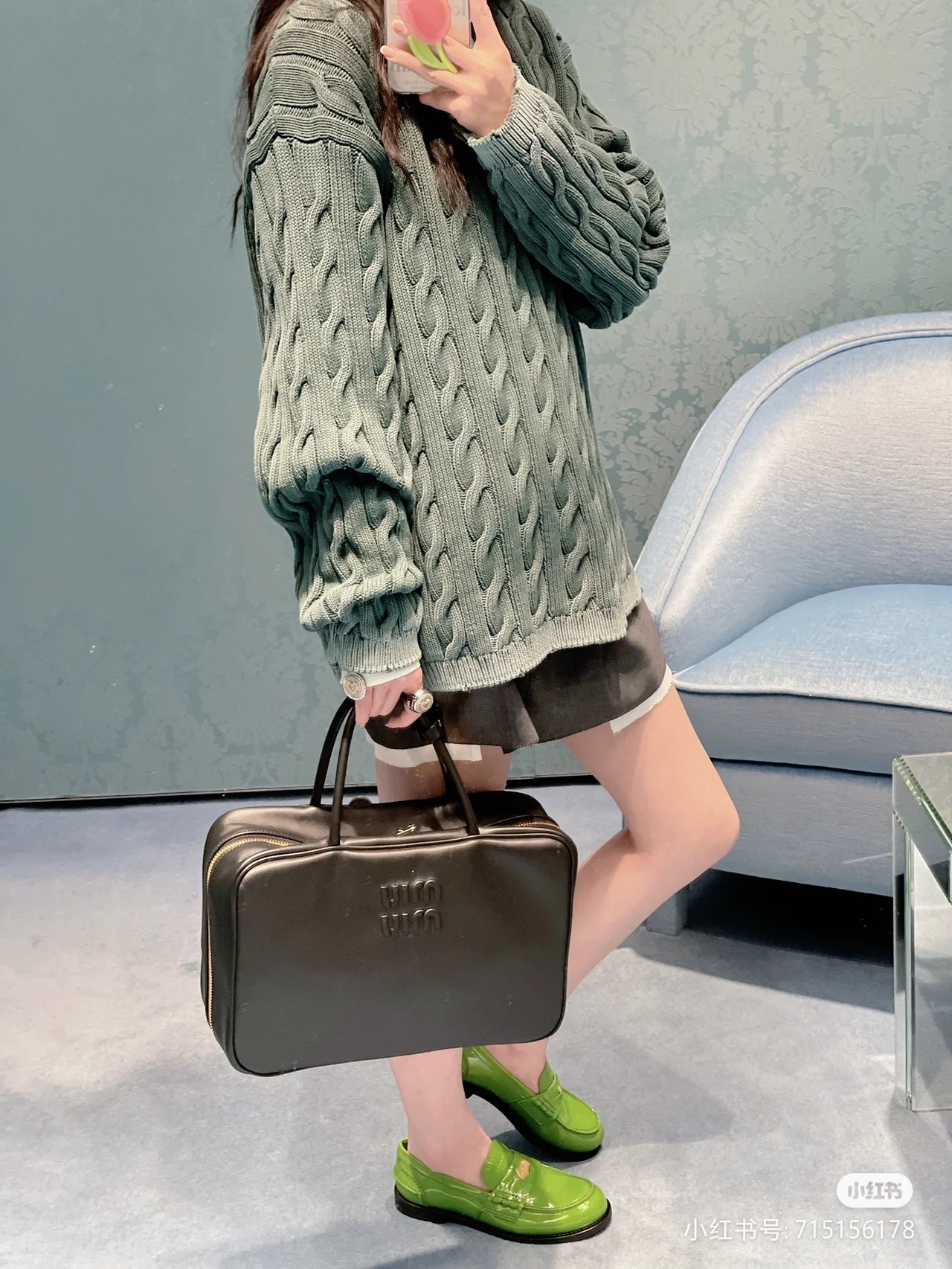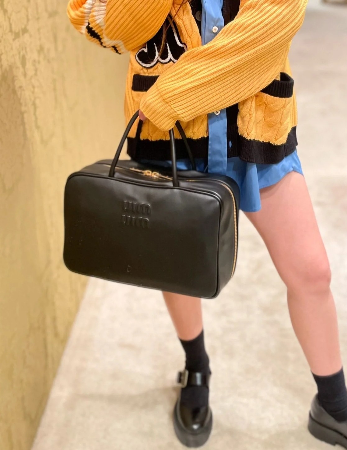 MiuMiu Dual-function Bowling Bag & Briefcase, Full Leather Black