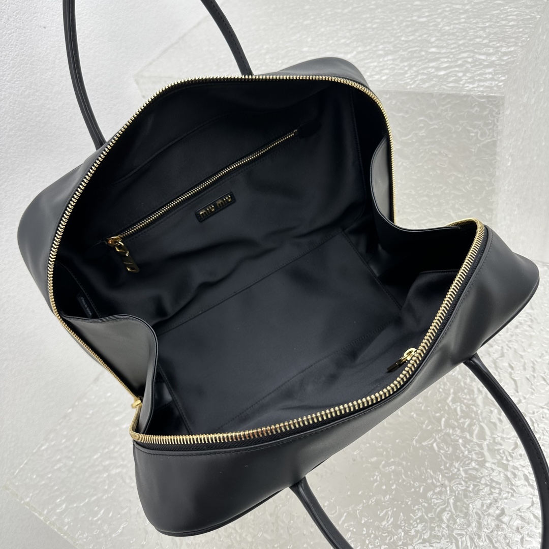 Introducing the new SS23 edition of MiuMiu Softy Padded Bowling Bag in a large size and black color. This bag truly deserves its position as a top hot pick. Its classic and sophisticated bowling bag design adds a touch of coolness, creating a contrast with the image of Miu’s girls. The embossed logo is kept minimalistic without excessive embellishments, showcasing clean and sleek lines that captivate hearts with a subtle and understated charm.