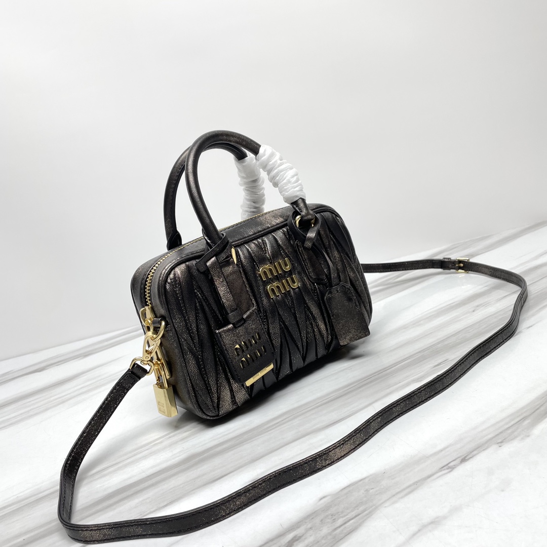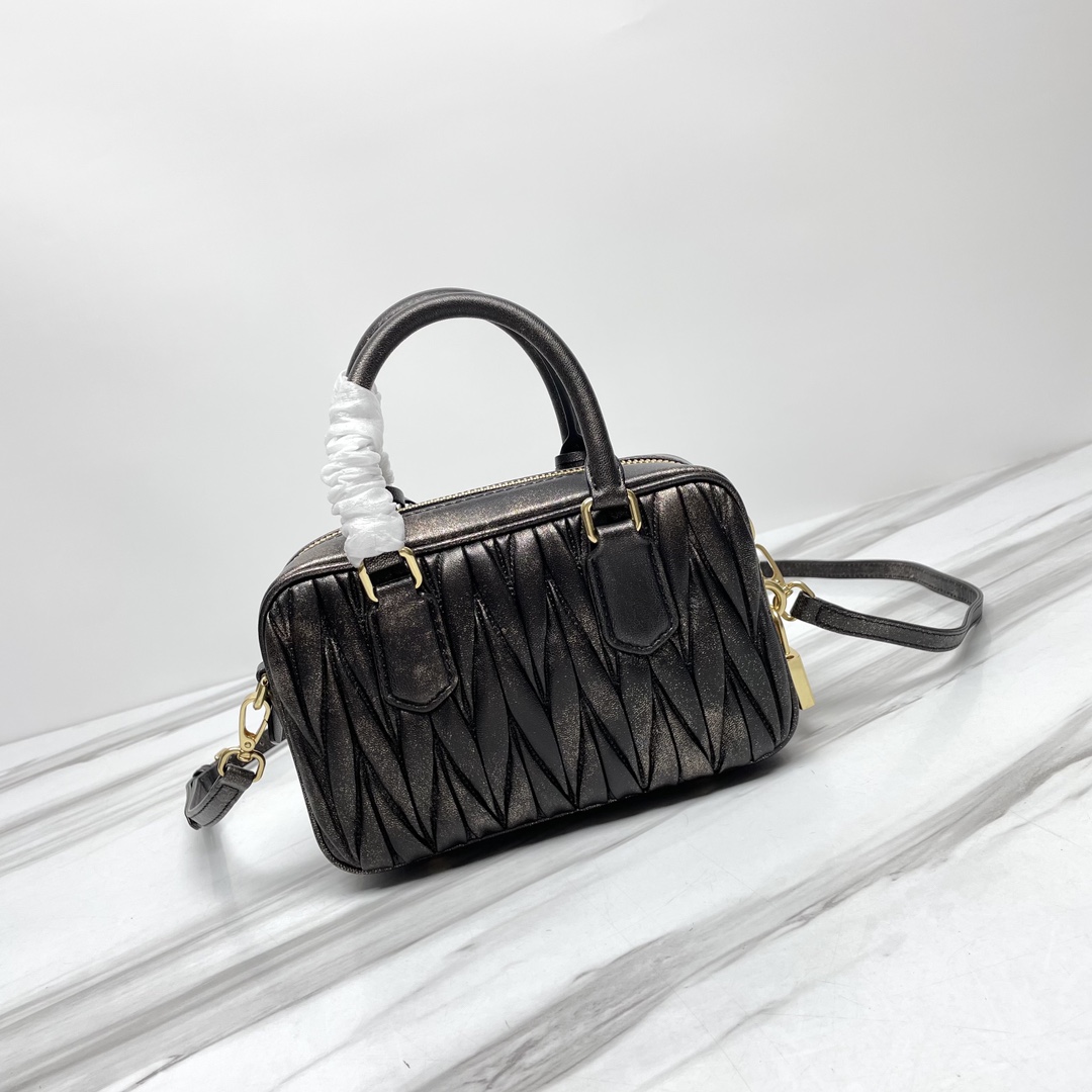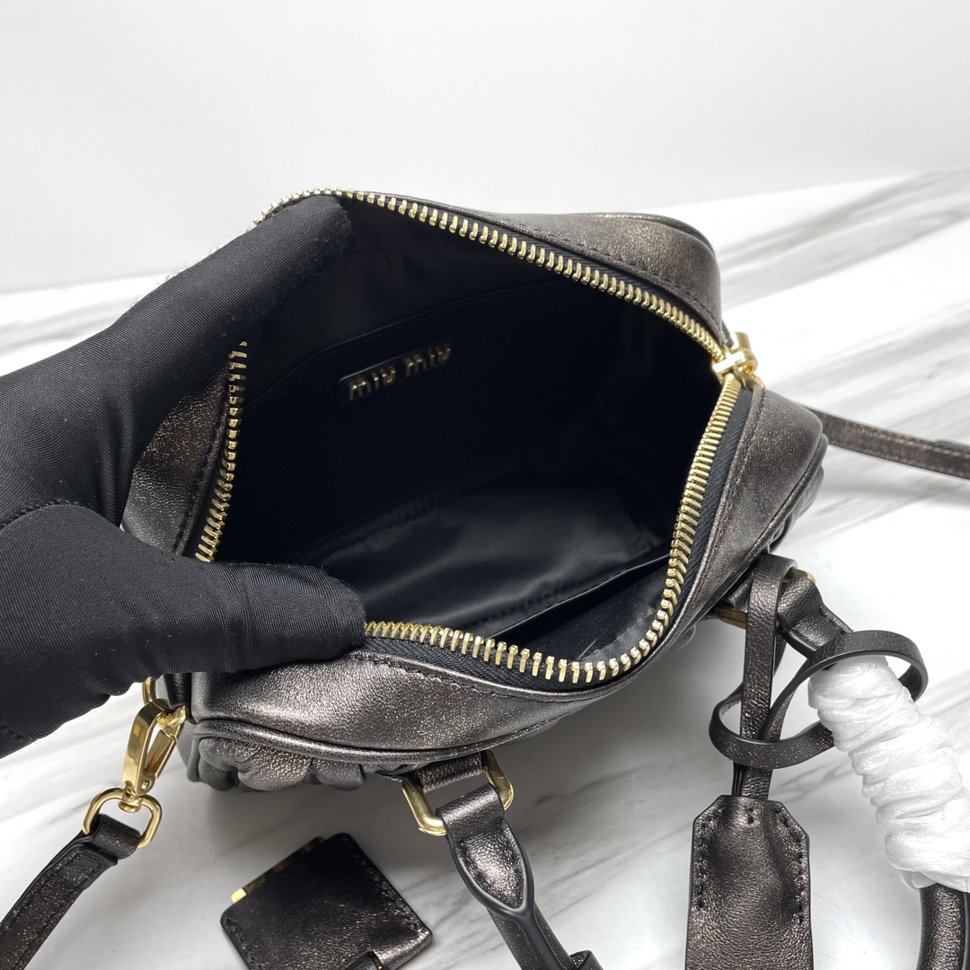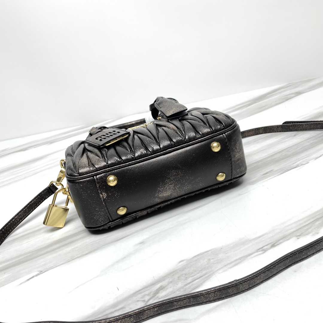 Introducing the new Miu Miu Too Pretty Bowling Bag in a vintage distressed finish. It is crafted from imported lambskin with the brand’s iconic Matelasse embroidery, vintage matte hardware, and retains its inherent playfulness. The bag features a structured and stylish silhouette, exuding a strong and captivating personality. It can be both sweet and salty, and has garnered immense popularity among fashion enthusiasts, comparable to the previous Miu Wander. Available in a variety of colors, it comes with the original packaging.
