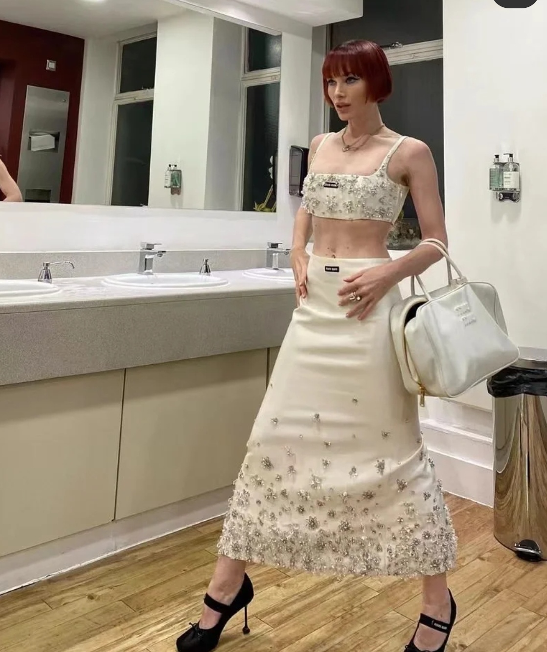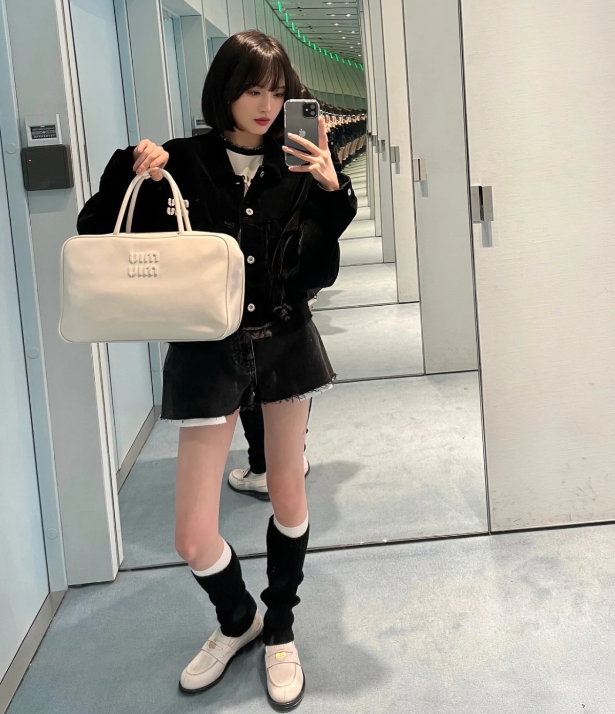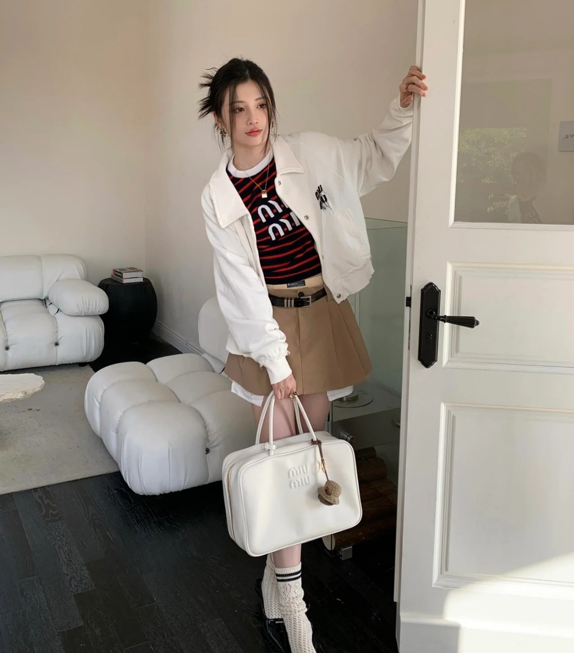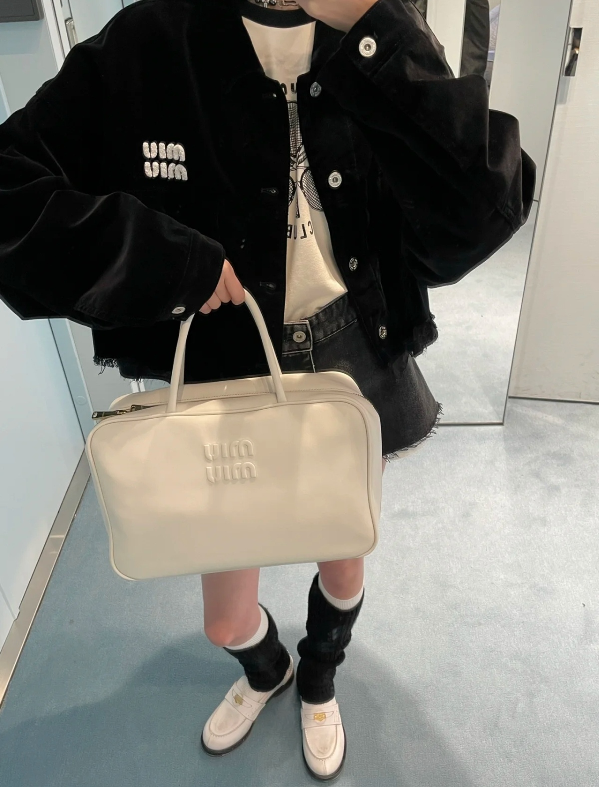 MiuMiu Dual-function Bowling Bag & Briefcase, Full Leather white