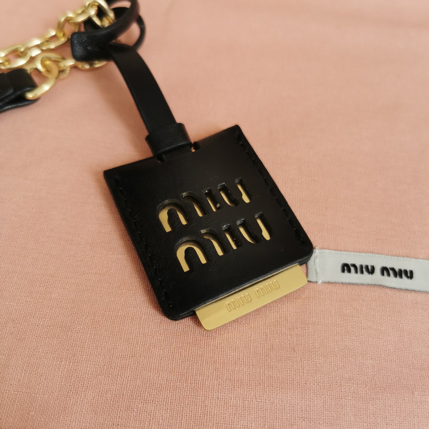 The new MiuMiu double-zip crossbody bag is crafted with imported lambskin featuring the brand’s iconic Matelasse embroidery. It showcases vintage matte hardware and a detachable 115cm metal chain shoulder strap. The interior is designed with multiple card slots for enhanced practicality. It comes with a brand new Miu signature pendant and has a structured and stylish shape, exuding personality. It is both cute and queen-like, offering ample capacity. It comes with the original packaging.