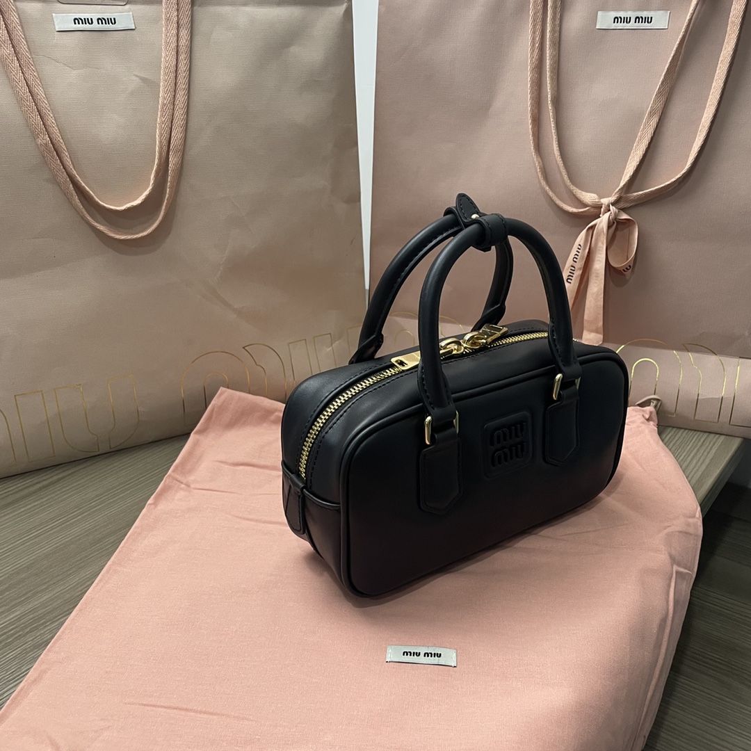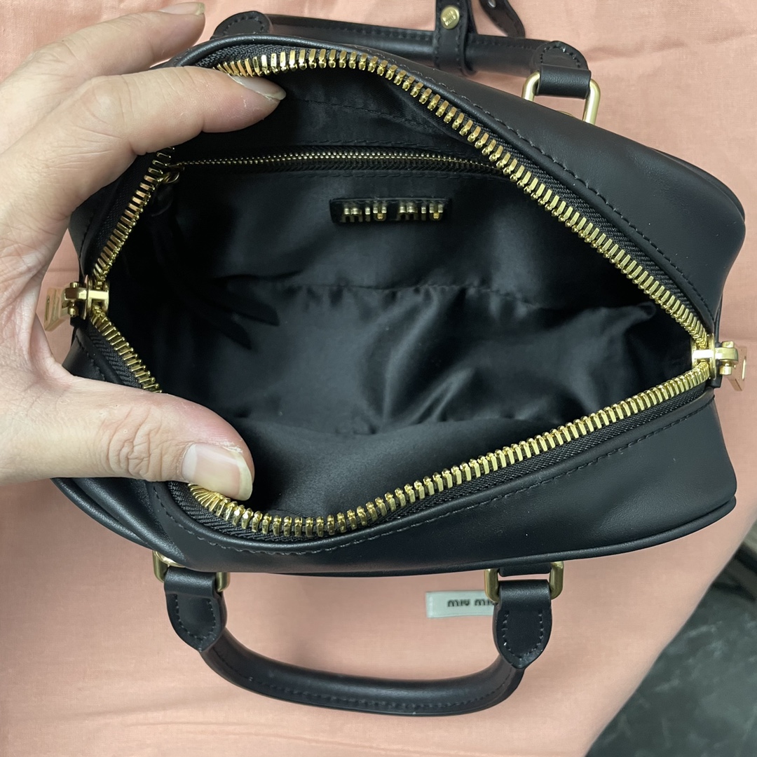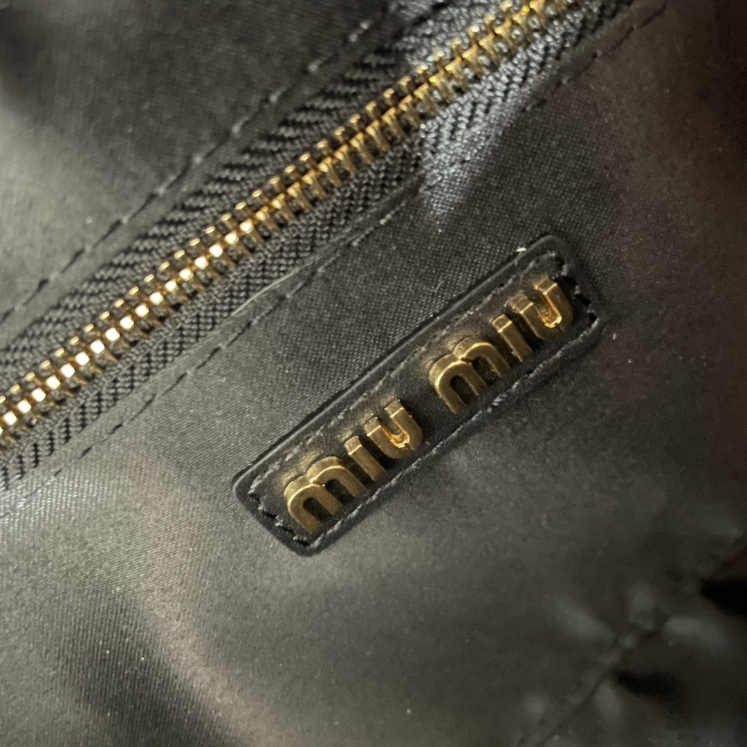 The new Miu bowling bag is a top recommendation on the official website and is definitely a popular style. It is crafted from premium imported calf leather, featuring Miu’s distinctive Matelassé pattern. The bag has a delicate and three-dimensional structure, with a front engraved logo that complements the leather color. It comes with a detachable and adjustable leather shoulder strap. The interior is lined with cotton satin, and there is a zippered pocket. It is favored by many celebrities and comes with original packaging.