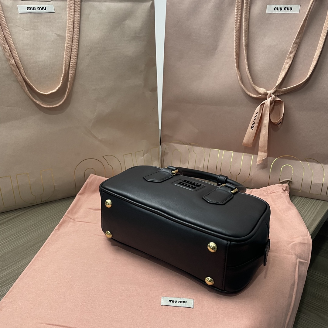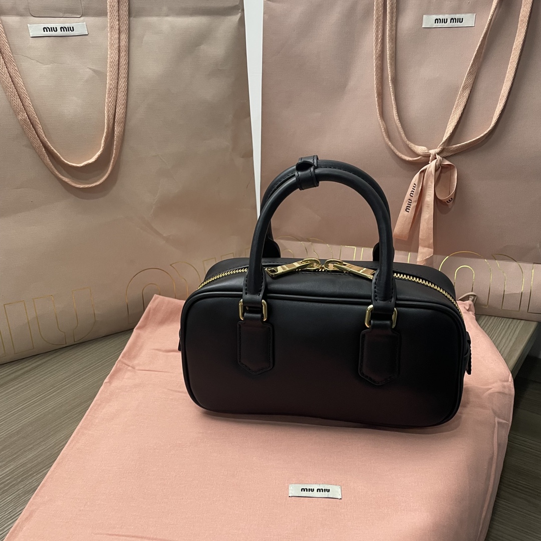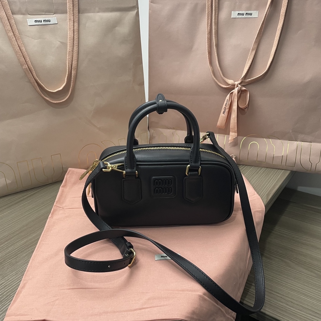 The new Miu bowling bag is a top recommendation on the official website and is definitely a popular style. It is crafted from premium imported calf leather, featuring Miu’s distinctive Matelassé pattern. The bag has a delicate and three-dimensional structure, with a front engraved logo that complements the leather color. It comes with a detachable and adjustable leather shoulder strap. The interior is lined with cotton satin, and there is a zippered pocket. It is favored by many celebrities and comes with original packaging.
