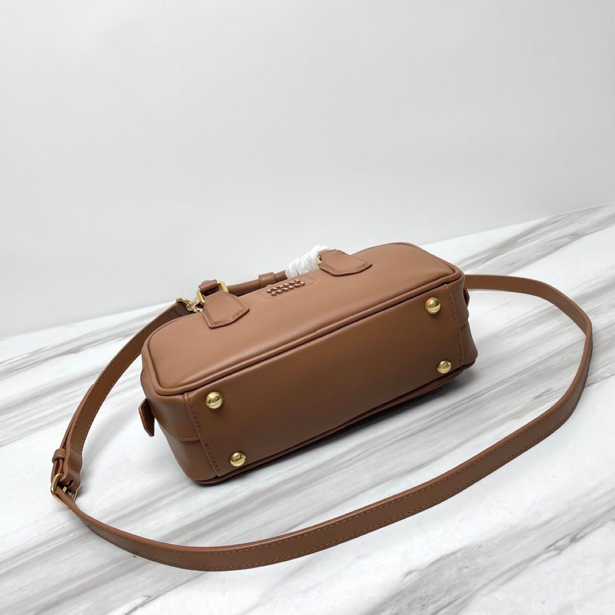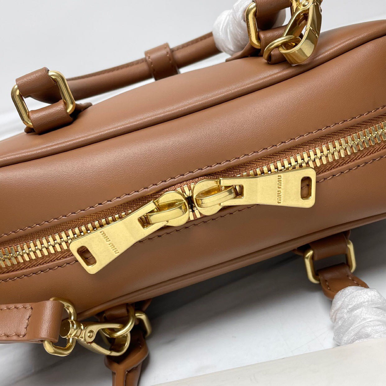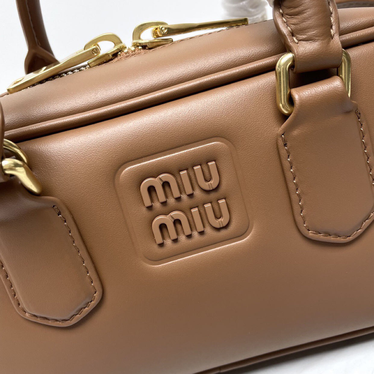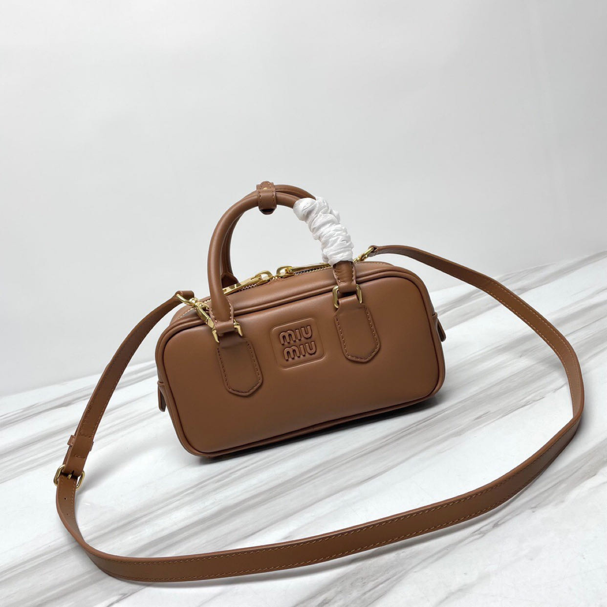 MiU MIU’s new bowling bag is definitely a popular style, made of top-quality imported calf leather. It features MiU MIU’s unique Matelasse pattern, giving the bag a delicate and three-dimensional appearance. The front is adorned with embossed logo lettering that complements the leather color. The bag comes with a detachable and adjustable leather shoulder strap. It is lined with cotton satin fabric and equipped with a zippered pocket. This bag has been favored by many celebrities and comes with the original packaging.