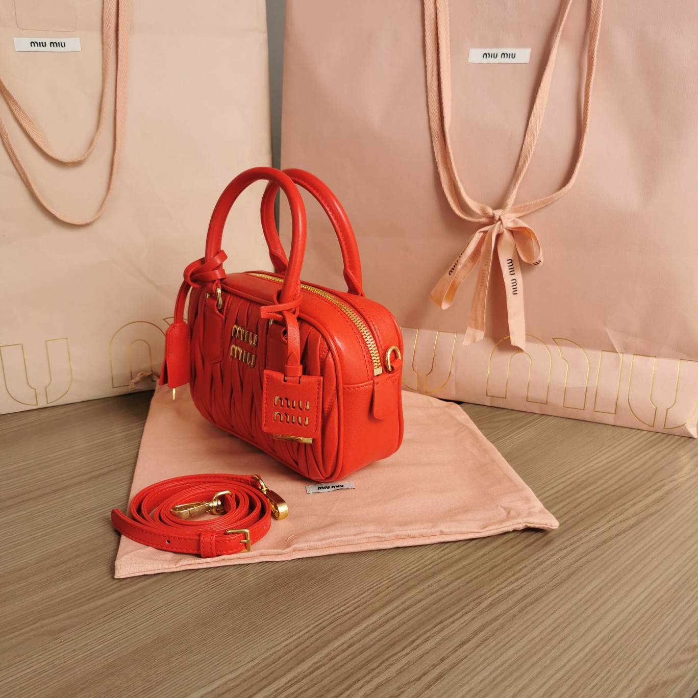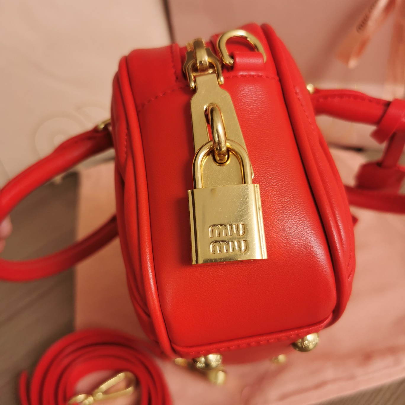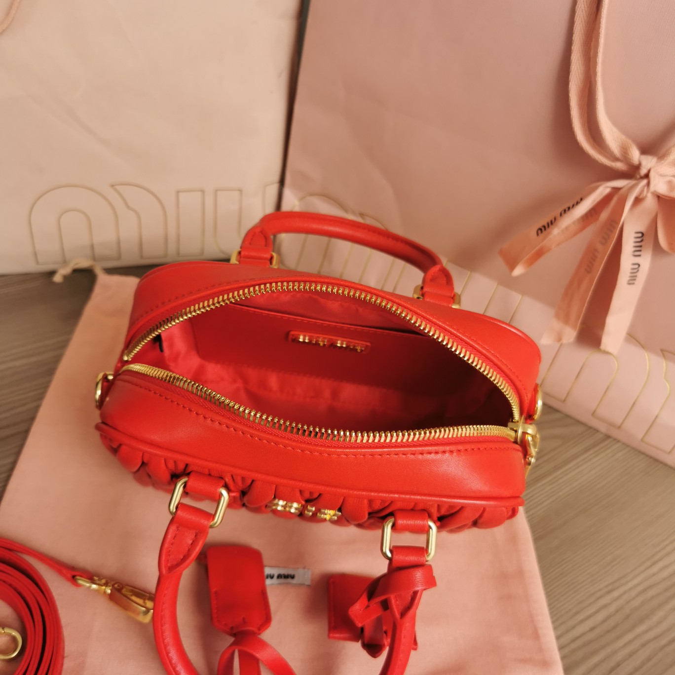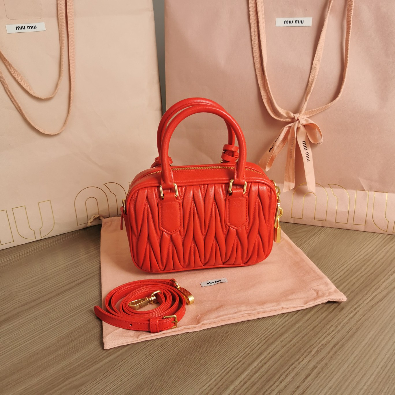 The new Miu Miu Too Pretty bowling handbag is crafted from imported lambskin, featuring the brand’s iconic Matelassé embroidered texture. It showcases vintage matte hardware, retaining its playful charm. The bag has a structured and stylish silhouette, exuding personality with a touch of queenly elegance. It offers ample capacity and has become a must-have item for fashion enthusiasts, just like the previous MiuWander. It comes with original packaging.