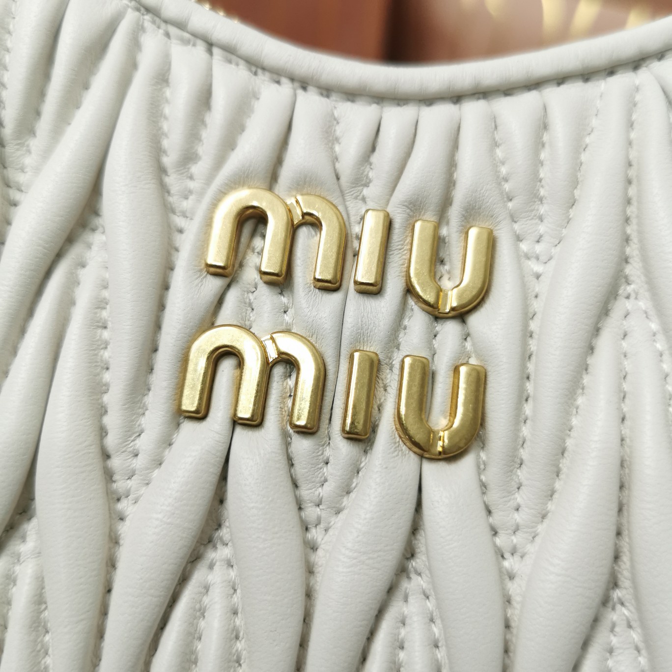 The new season’s Miu Miu Crystal Chain Edition accessory collection handbag features the signature Matelassé embroidered lambskin material, a unique design exclusive to Miu Miu. The stunning shoulder strap adorned with crystal-like decorations showcases a distinctive feature. The bag’s design exudes exquisite elegance, with a metal engraved logo on the front. It has a zip closure, satin and soft lambskin pockets, and comes with original packaging.
