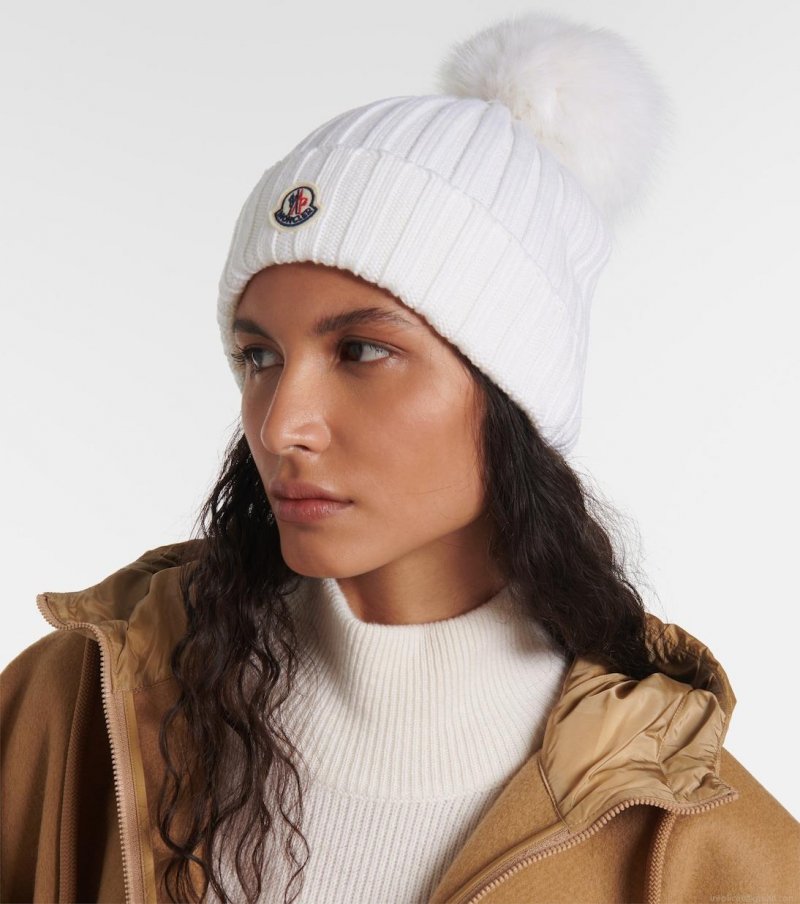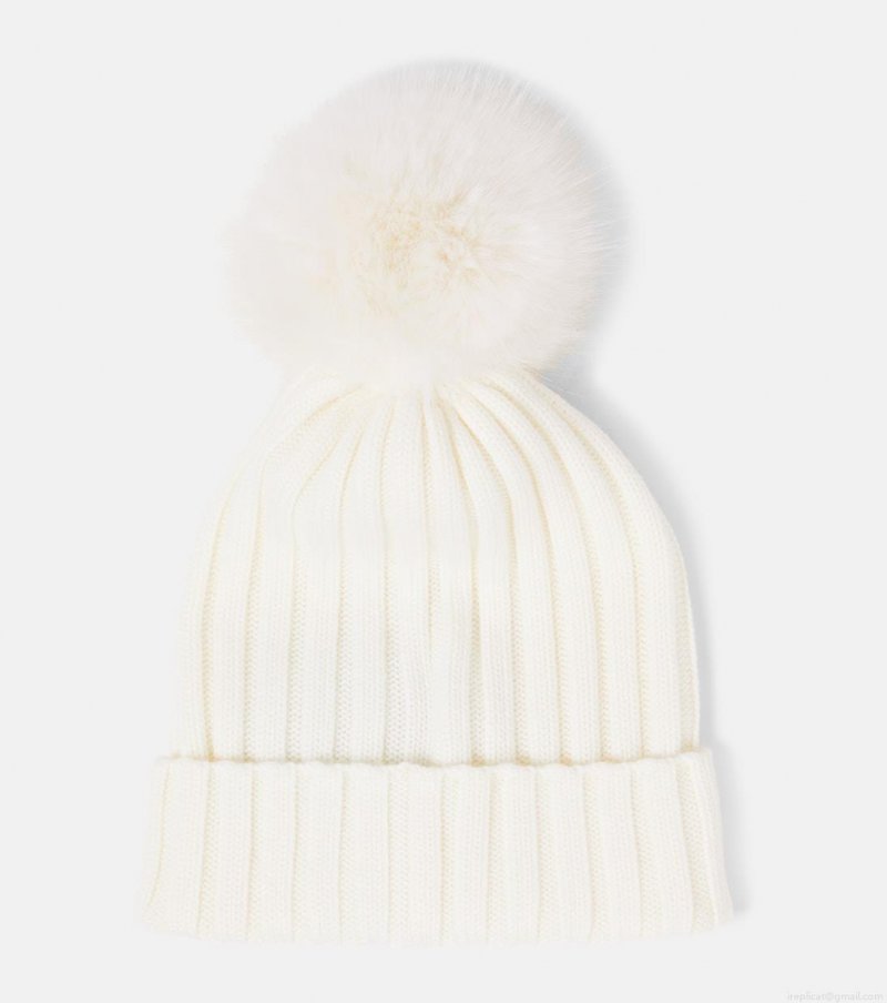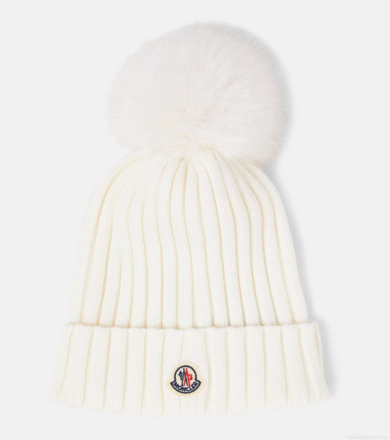 MonclerLogo faux fur-trimmed wool beanie