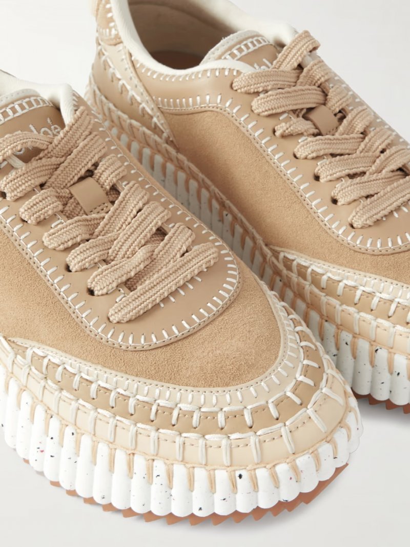 - Beige suede (Calf) and recycled-mesh