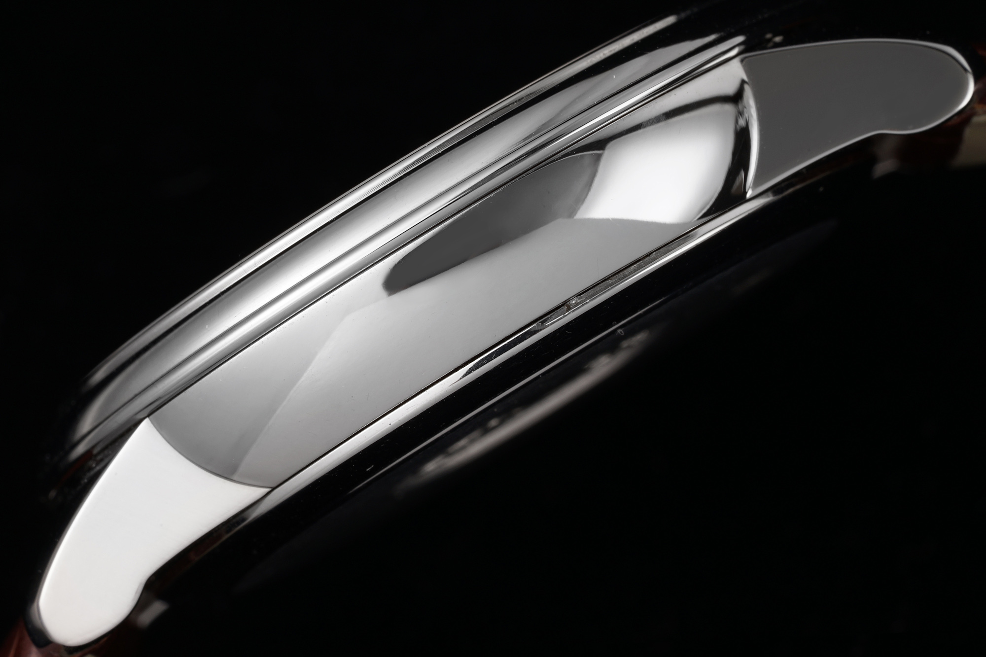Case: The case features a simple and elegant design, meticulously polished to showcase an irresistible texture. The four lugs have slight curves, and the case has been chamfered for a refined look.