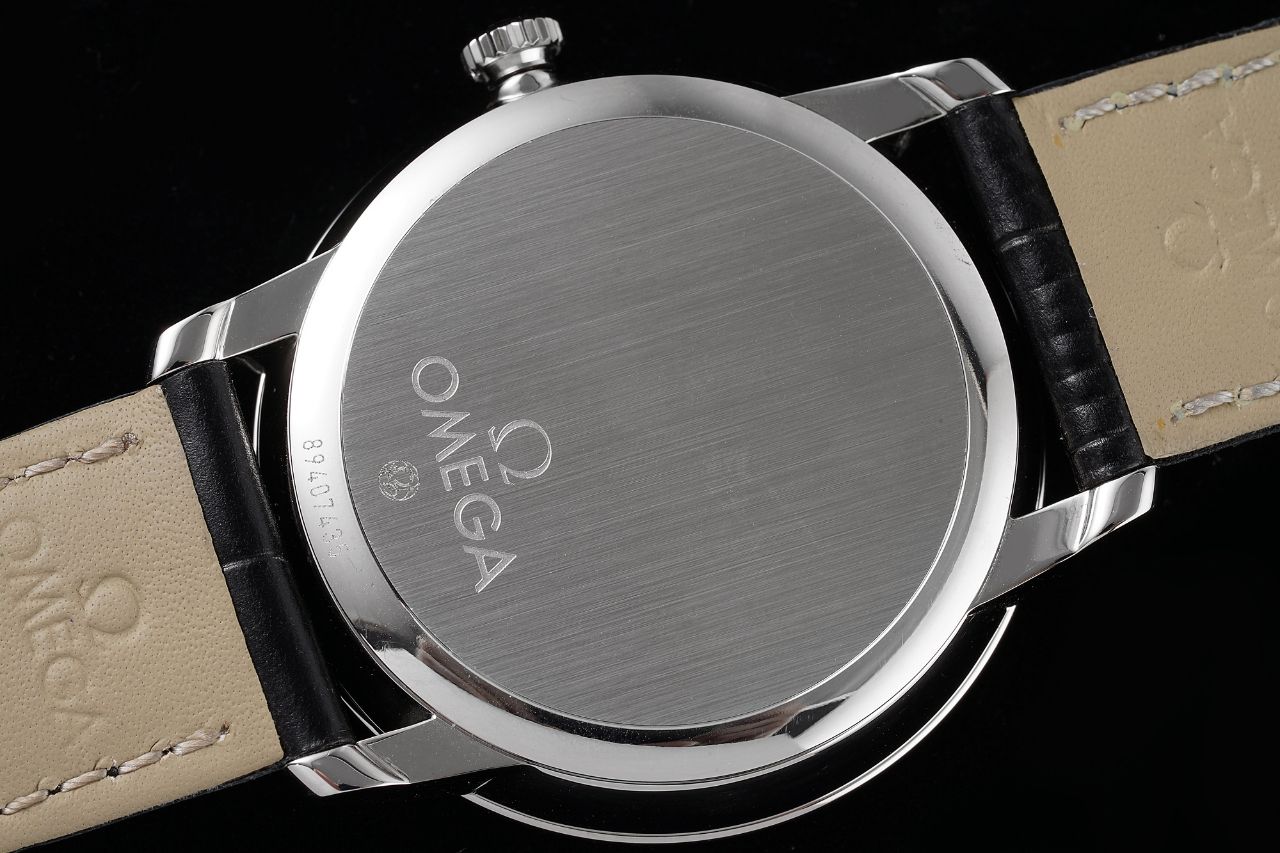 Strap: The strap is thick in the middle, flat on the sides, and meticulously stitched for a delicate and practical finish. It is paired with the classic Omega-style buckle