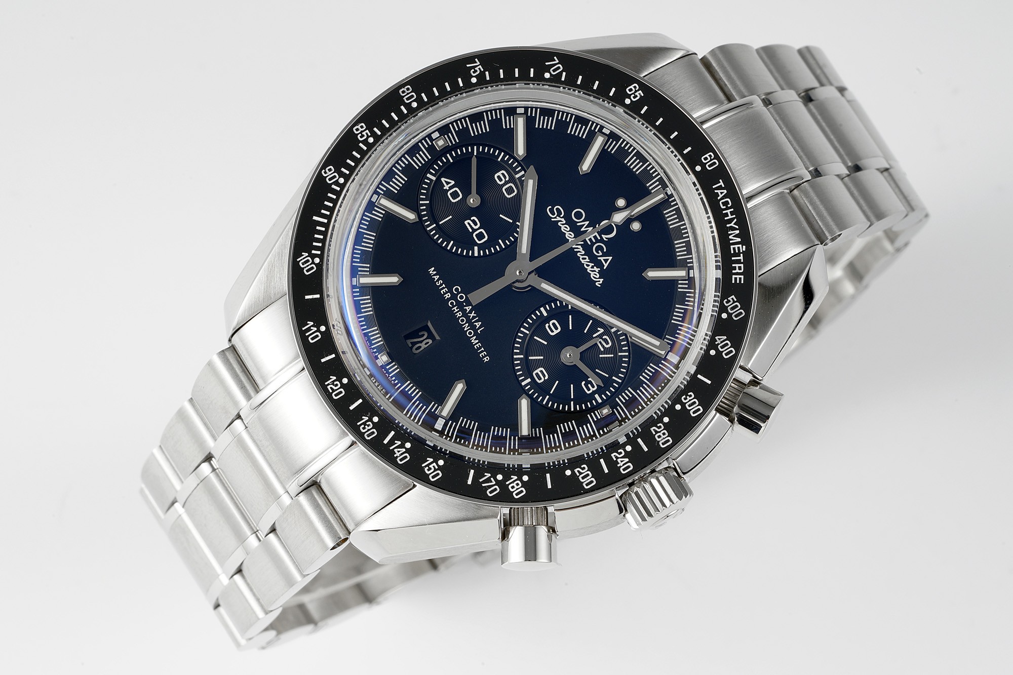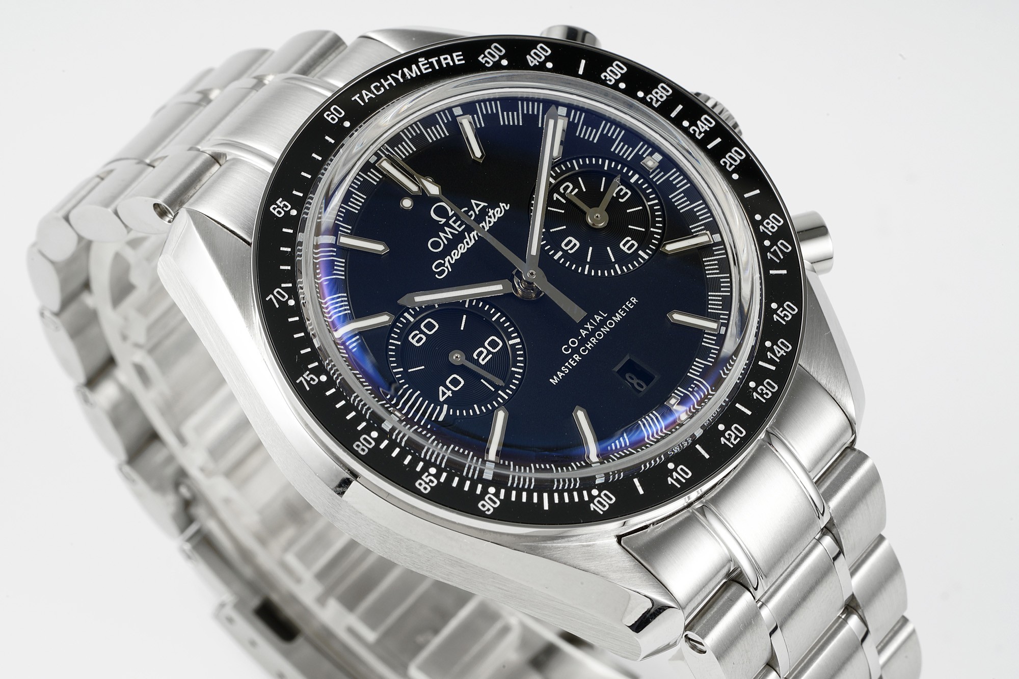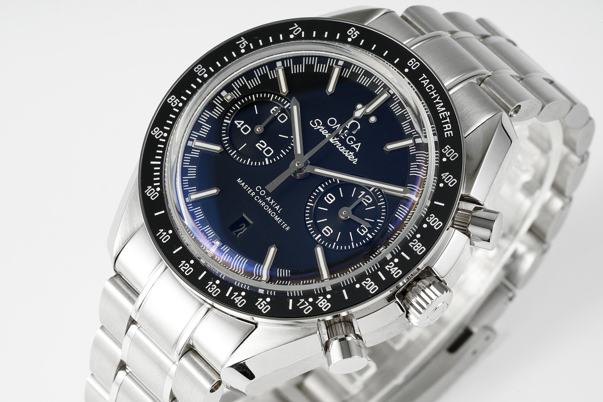 This watch features the Omega 9900 chronograph movement and the steel used is made of imported AISI316L special steel with hardened treatment, resulting in a hardness of 240HV. The sandblasted texture on the case is clear, delicate, and pure white, without any pores, perfectly reproducing the authentic material. The transparent curved sapphire crystal adds to the prominence of the dial. The matte dial is paired with platinum-plated indexes, and the luminous material is made of imported super luminous powder. The Supermaster Moonwatch series comes with a stainless steel bracelet and an imported leather strap, and the bracelet and ceramic bezel can be interchanged with the original version. We may never reach space, but we can at least own an Omega Moonwatch in our lifetime.