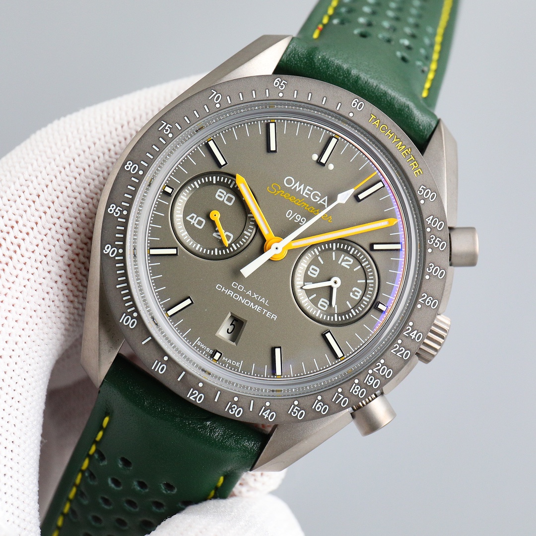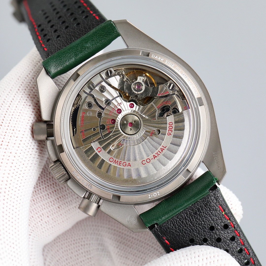 Movement: 9300 Co-Axial Chronograph movement with black oscillating weight automatic winding and rhodium-plated surface decorated with special Arabic-style Geneva waves