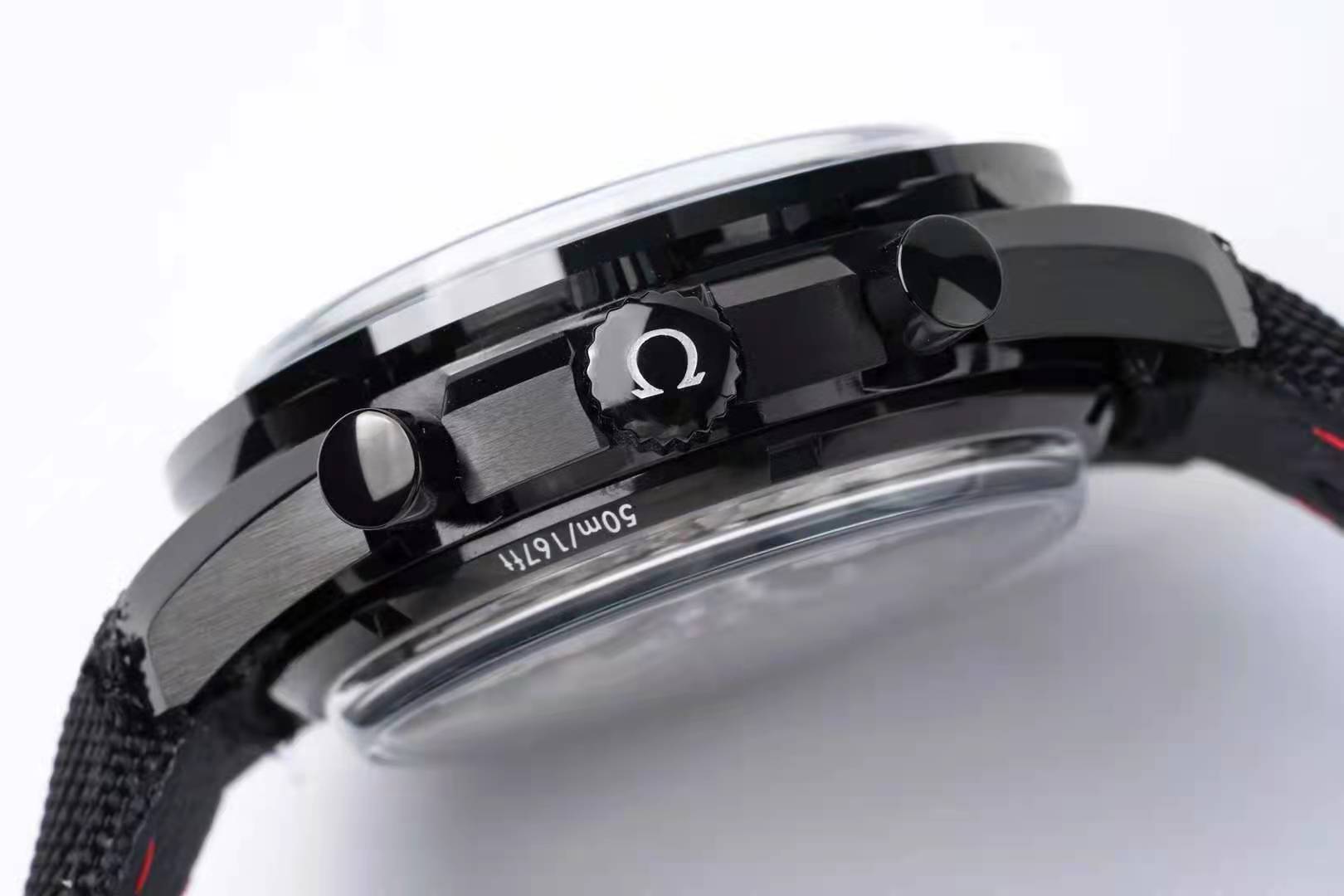 This watch features the stable and high-performance original 9300 automatic movement. The 3 o’clock sub-dial displays a 12-hour chronograph, while the 9 o’clock sub-dial shows the small seconds. The case thickness remains consistent with the original at 17.2mm, and the lugs of the case exhibit a finer and more elegant design. The thickness of the bezel lettering is clearer and more pronounced, with a double-sided convex mirror and superluminova for enhanced luminosity. This watch is a flawless 1:1 replica of the original, perfectly crafted without any imperfections.