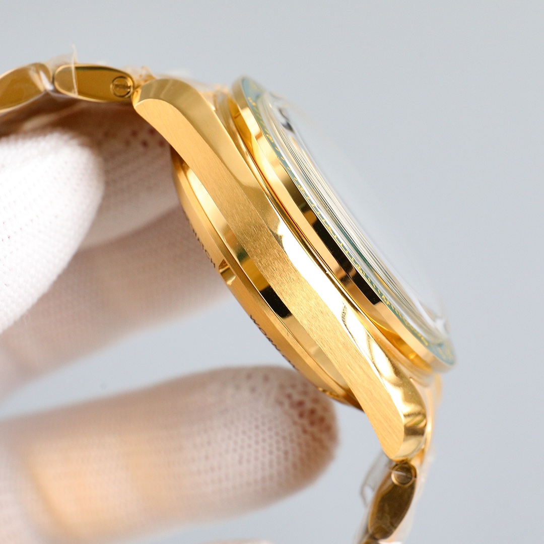 This Moonwatch is inspired by the style of the fourth generation Speedmaster watches. It comes with an integrated black rubber strap and is crafted from Moonshine 18K gold, giving it an elegant and timeless tone. The watch features a Moonshine 18K gold stepped dial with sunray brushed effect, blackened sub-dials and hour markers, a ceramic bezel adorned with a tachymeter scale made using OMEGA Ceragold technology, and the iconic Dot Over Ninety seen on early Speedmaster models, paying tribute to the illustrious lunar landing history of the Speedmaster.