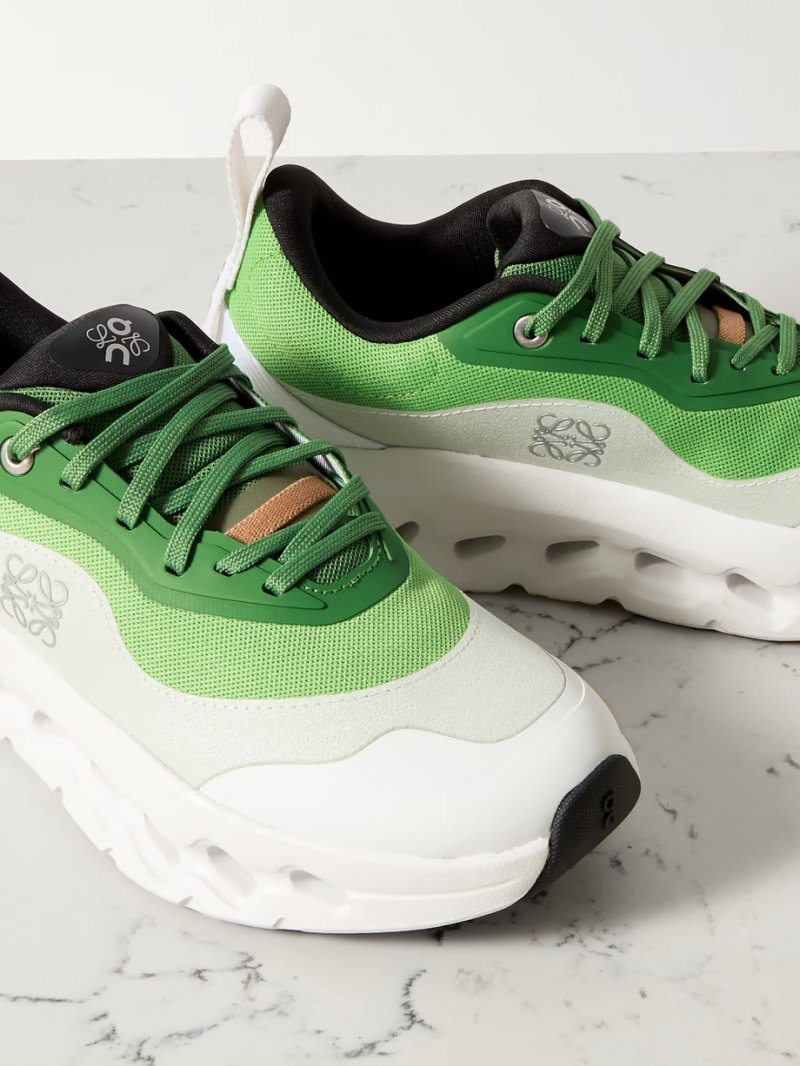 - Tonal-green and white stretch recycled-knit