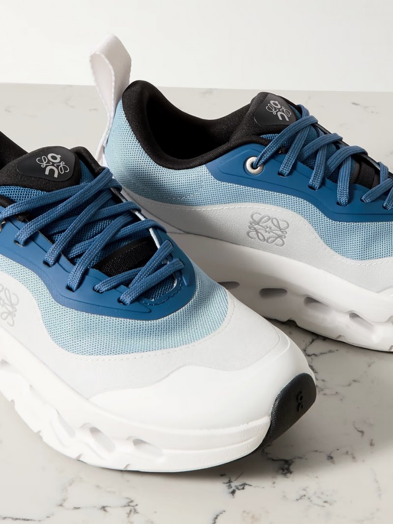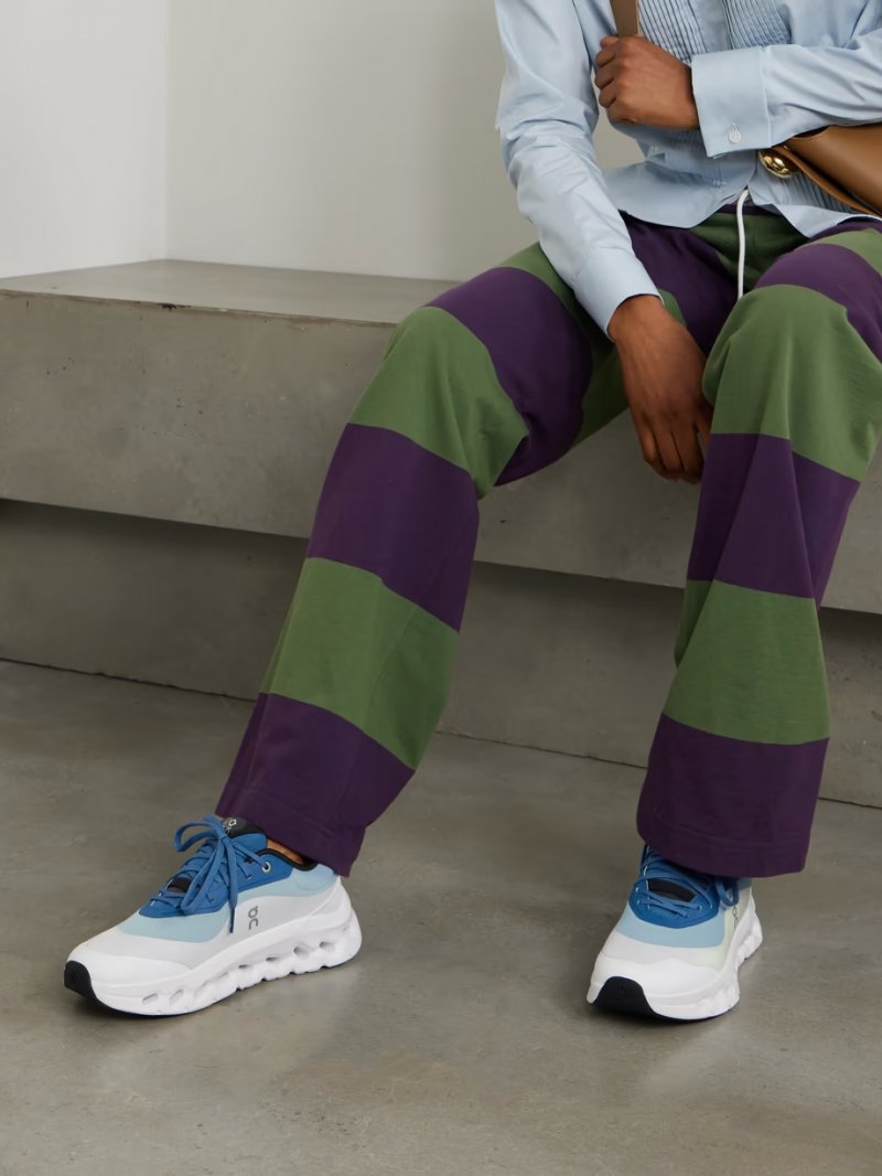 - Tonal-blue, gray and white stretch recycled-knit