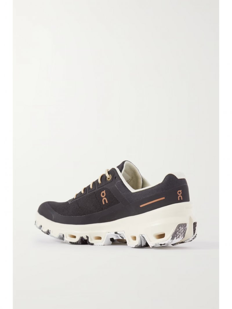 - Black and red recycled-canvas, black and gold mesh