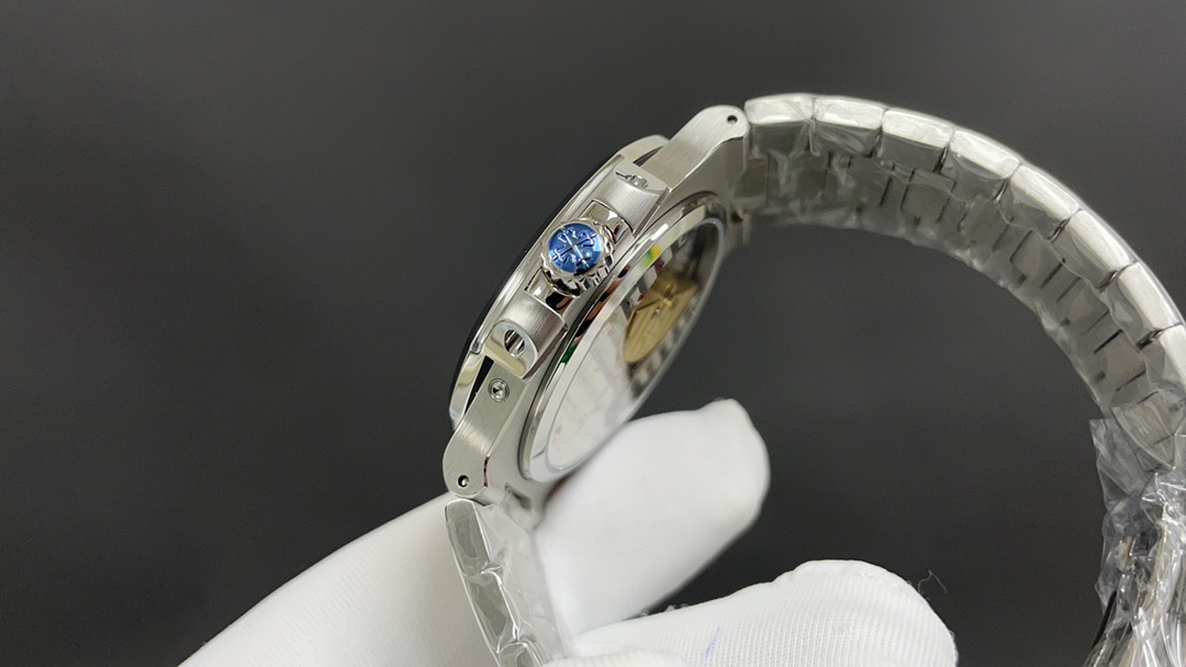 【Case】: The cushion-shaped case, identical to the genuine model, combines frontal brushing and side polishing techniques, creating a distinct sense of layering and a rich texture. The case is made of 316L stainless steel and features a folding clasp. The upper left corner displays the power reserve (48 hours), the lower left corner shows the calendar (adjustable manually by pulling out the crown to the second position), and the lower right corner indicates the seconds.